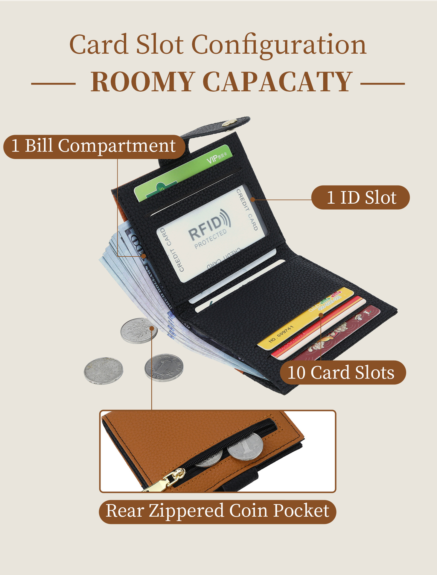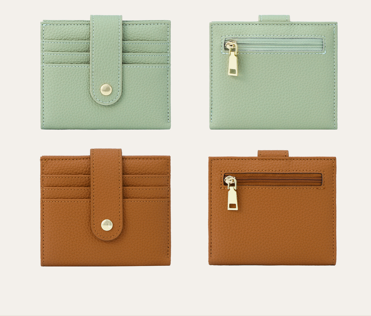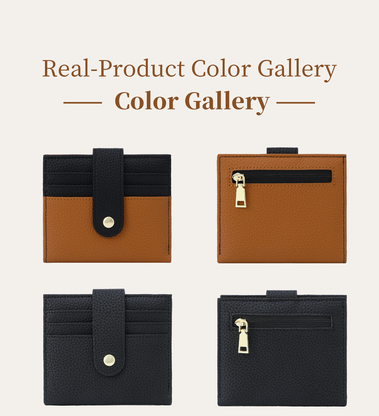 羊革風ジッパー付きアコーディオンカードケース RFID盗難防止 多カードスロット付きIDケース 日韓女子向け小銭入れ