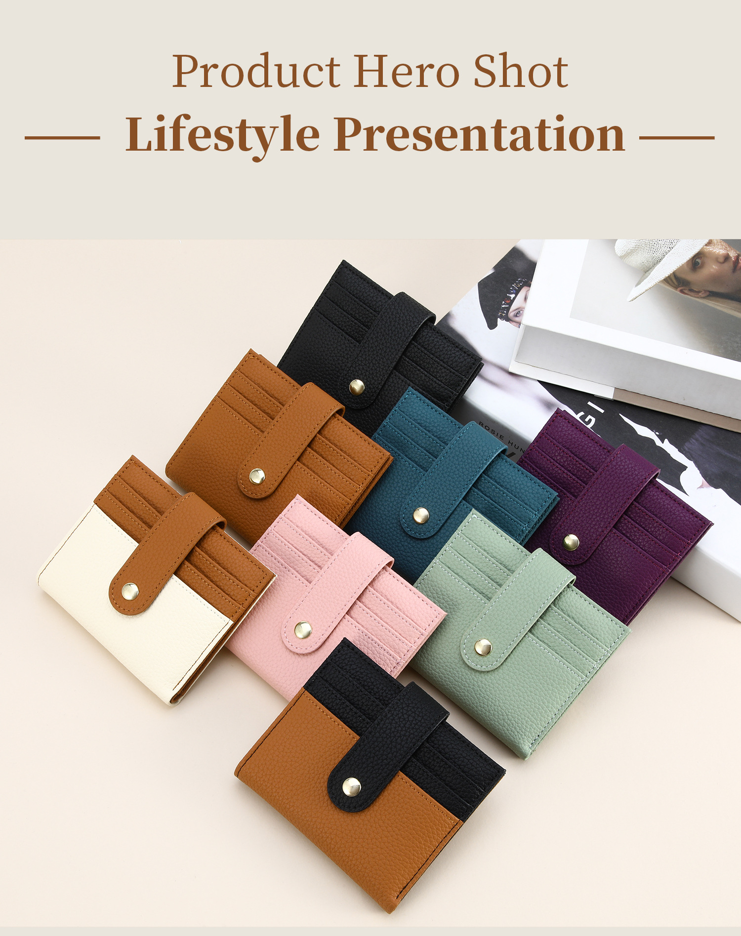 新款超纤rfid防盗刷钱包荔枝纹卡包卡夹证件包零钱包女功能小包