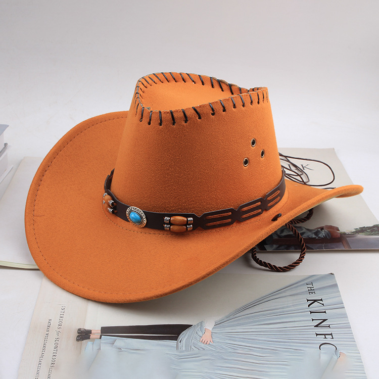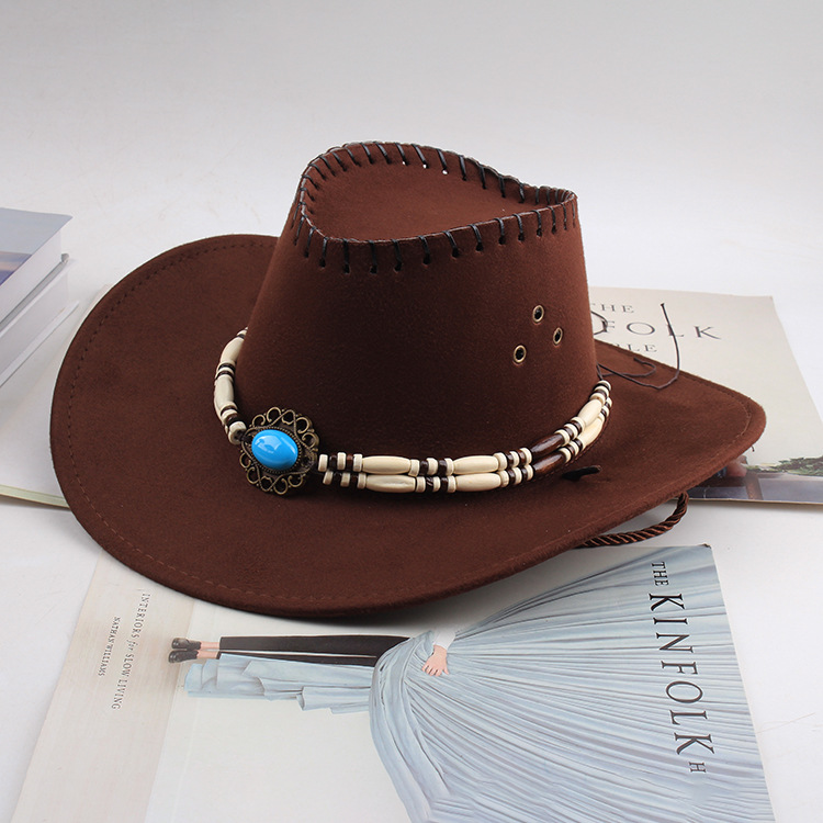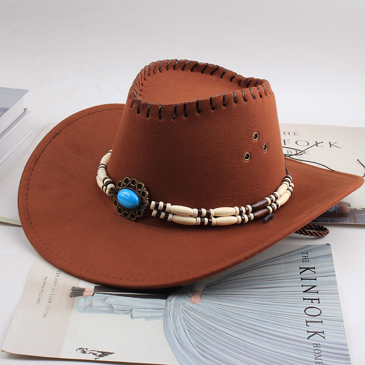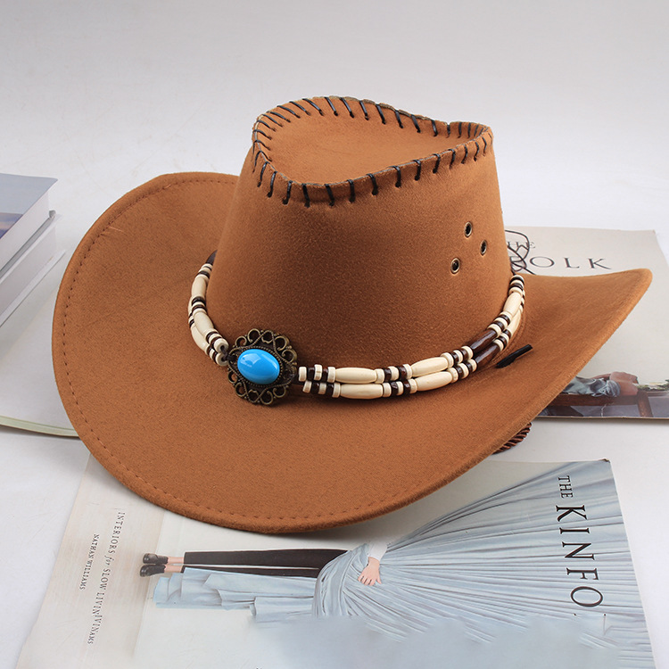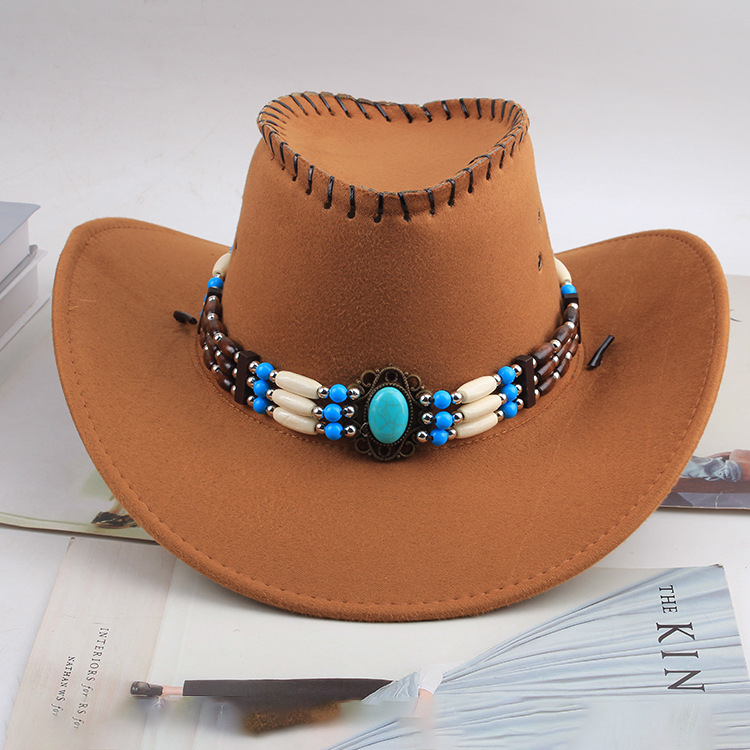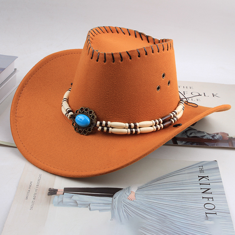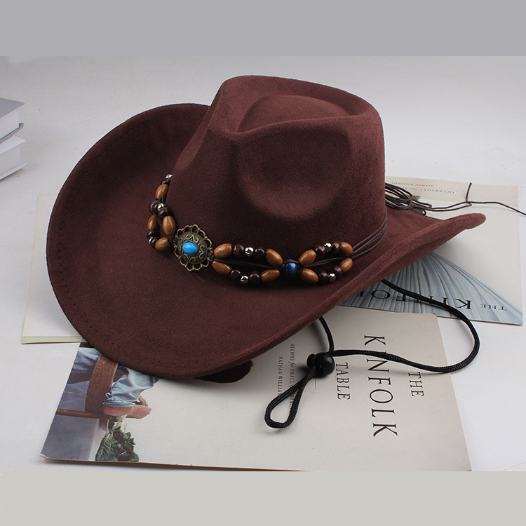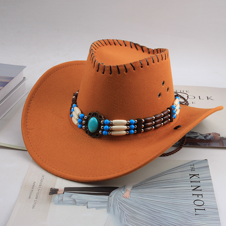 ヨーロッパとアメリカのレトロなウエスタンカウボーイハット、チベットスタイルの大きなつばの帽子、男性と女性のジャズハット、日焼け止め乗馬帽子、サンハットビーズ