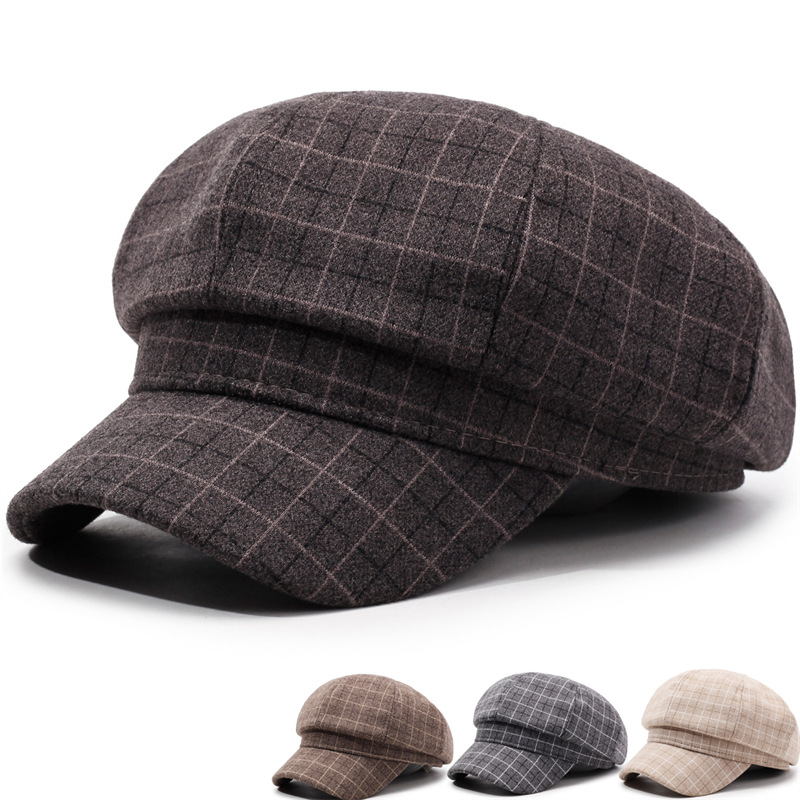 韓国のコートの毛の帽子の女性の秋冬の保温帽子のファッションのカジュアルな格子の八角の帽子の復古のアヒルの舌のベレーの女性