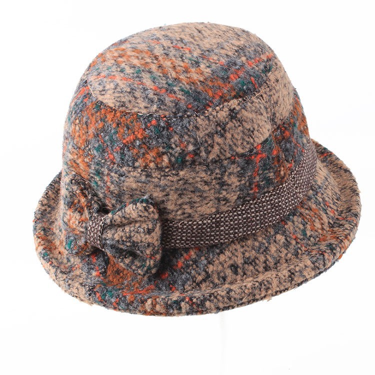 帽子女格子毛呢保暖渔夫帽秋冬百搭时尚蝴蝶结盆帽韩版卷檐小礼帽