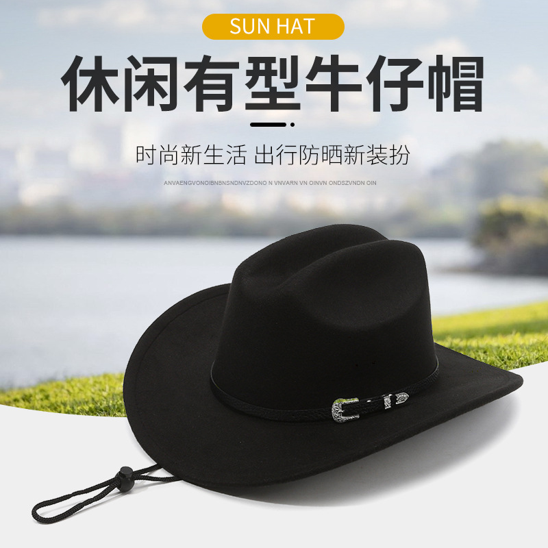 アマゾンクロスボーダー新型西部カウボーイ帽欧米の大きなひさしの皮革少数民族風ジャズ帽