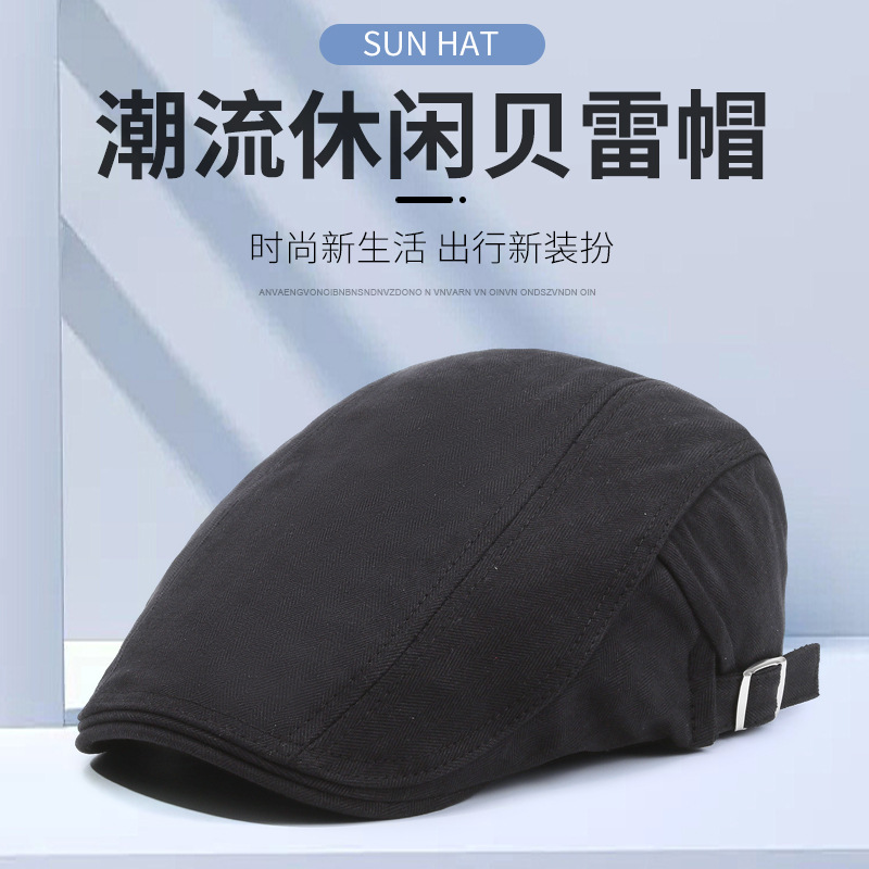 ベレー帽男性春秋純色英倫復古前進帽日焼け止め日除け鴨舌帽純色シンプル薄金