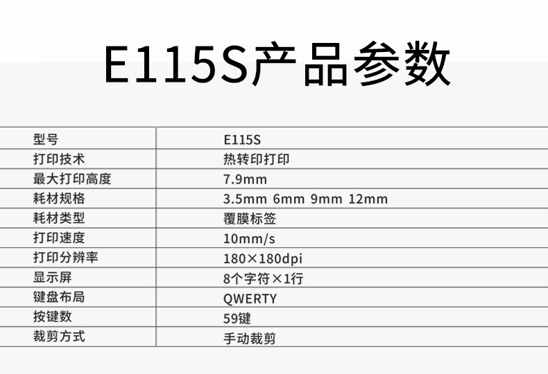 E115S标签打印机通信机房线缆手持便携热转印小型工程弱电标签机