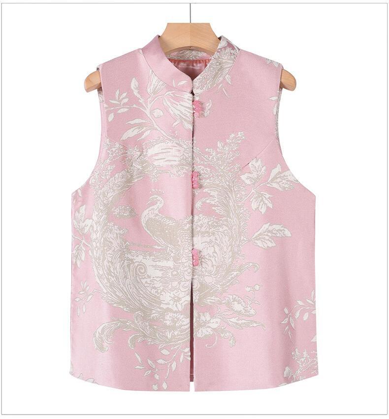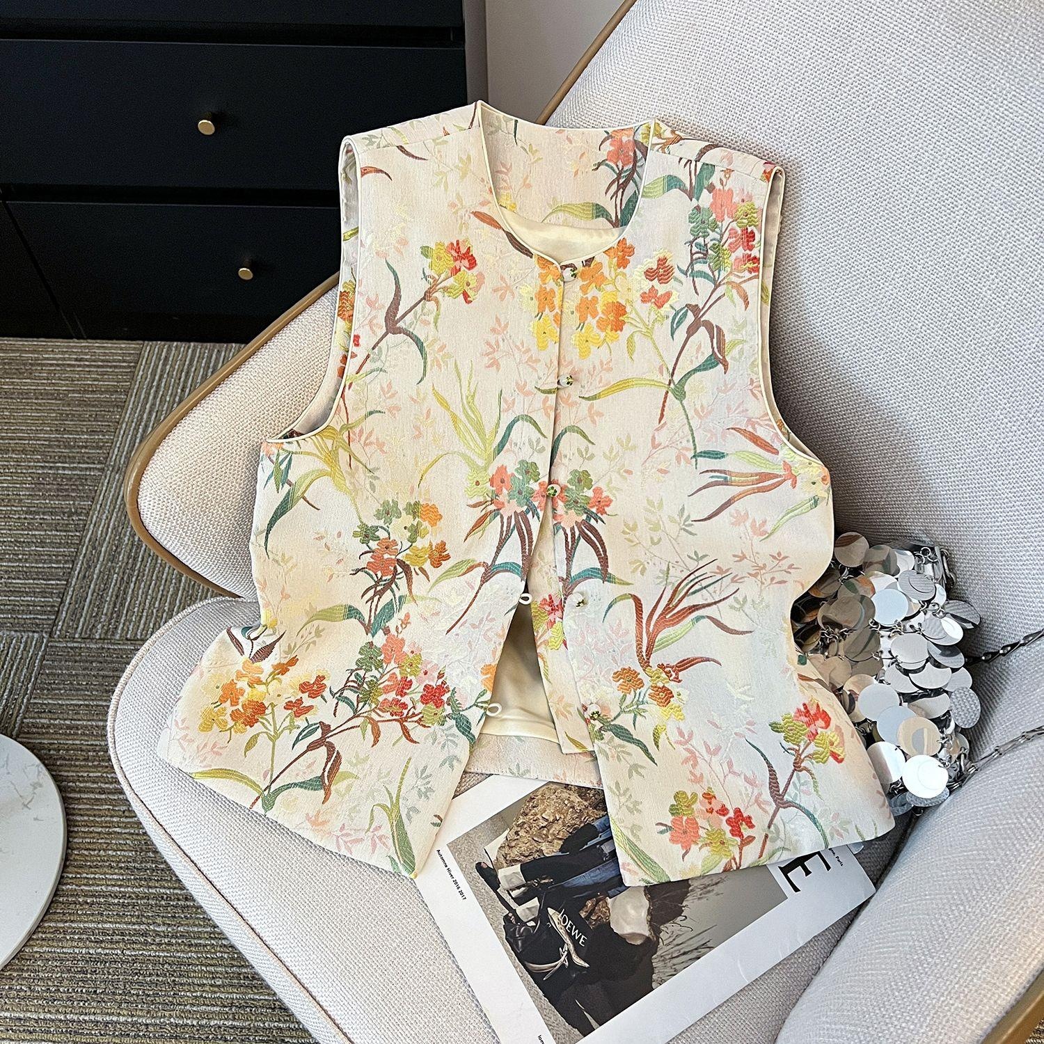 新中国風馬甲女性盤ボタン高級ベスト唐装カン肩春刺繍ジャカード上着工場
