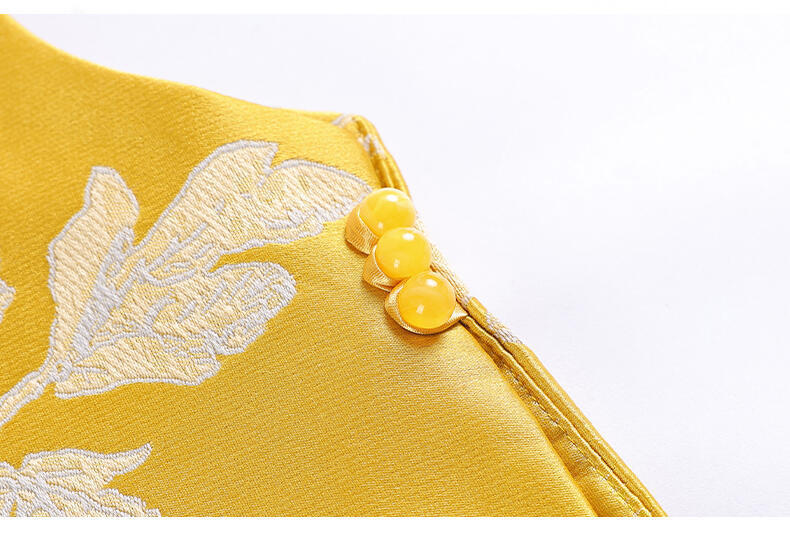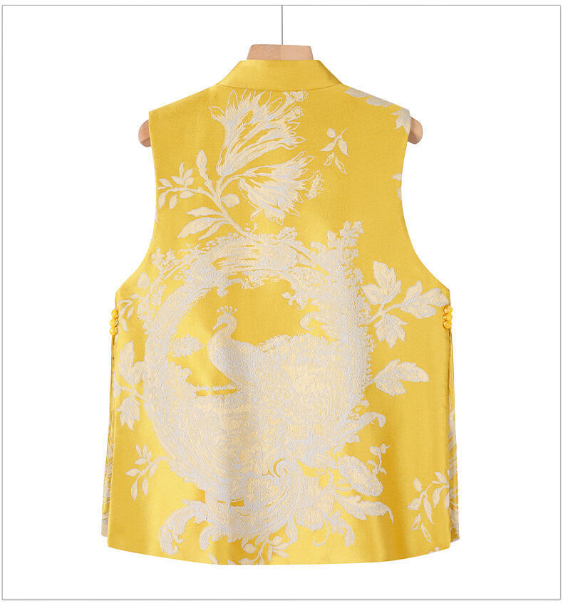 2025春の新型気質デザイン感馬甲新中国風黄色ジャカード盤ボタンベスト気質カンタン