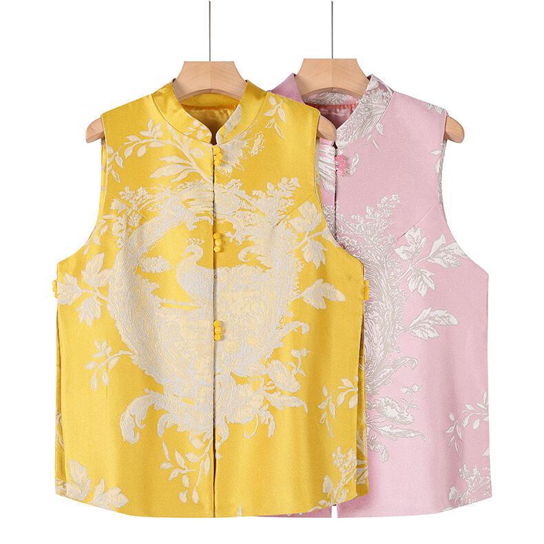 新中式民族風ベスト2025春夏新作イエローレトロジャカード盤扣ベストノースリーブトップス