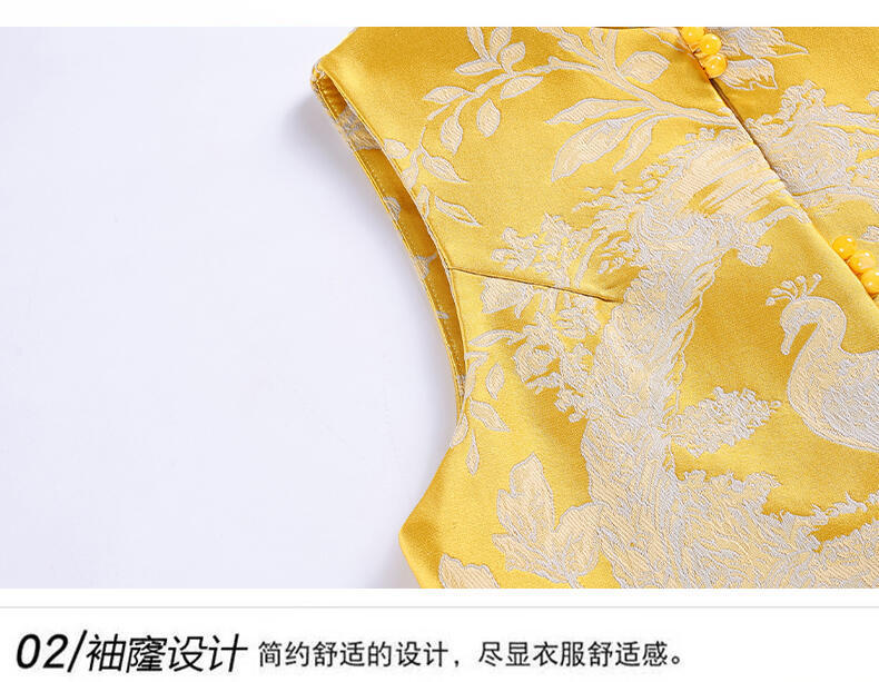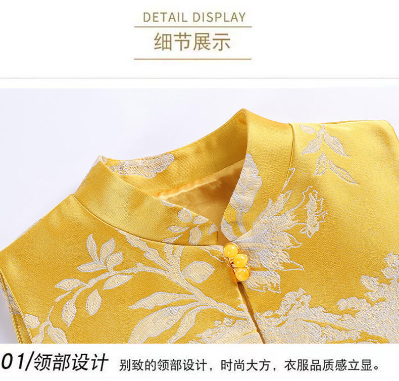 黄色のレトロな中国風ベスト、女性用2025年秋改良版チャイナドレス、サテンの痩身ベスト、中国風