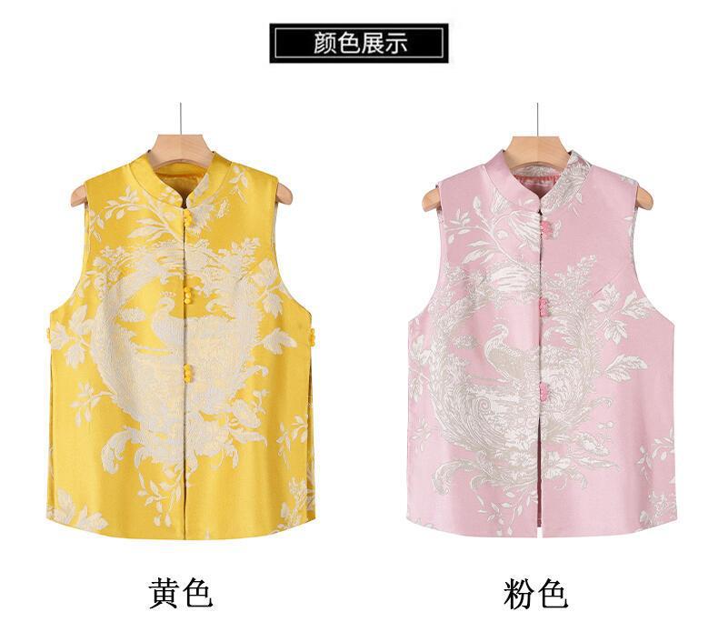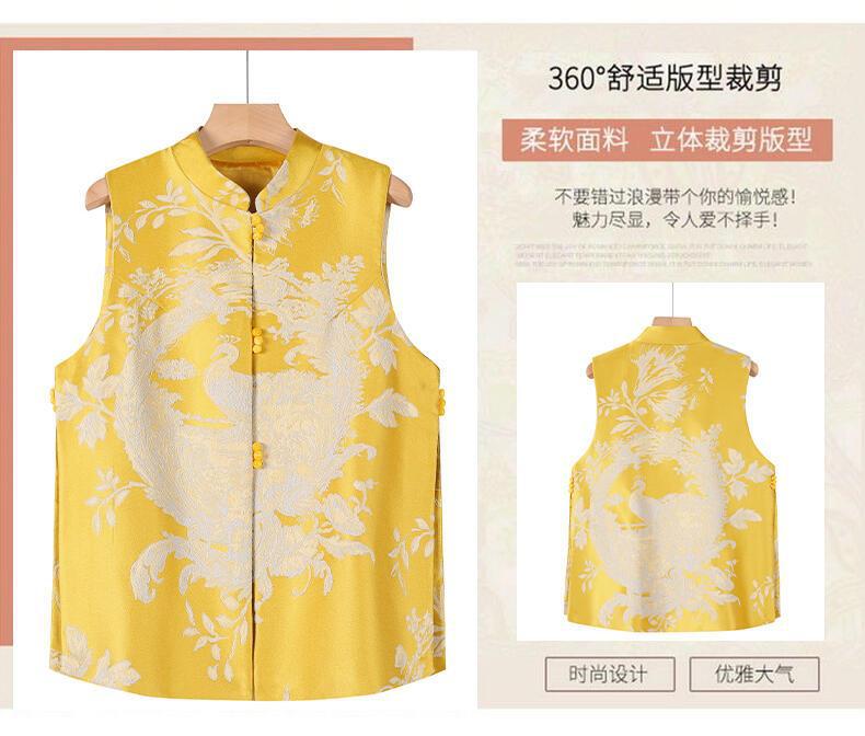 2025新中国式馬甲女春秋金復古チャイナドレスジャカードの絹織物が痩せているベストの肩の中国風唐服