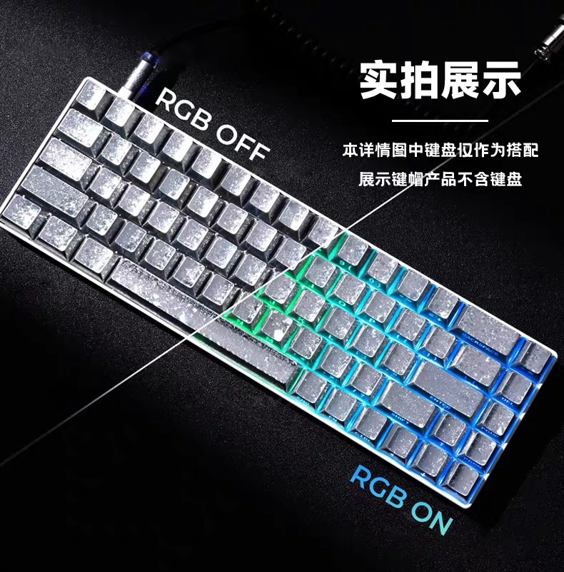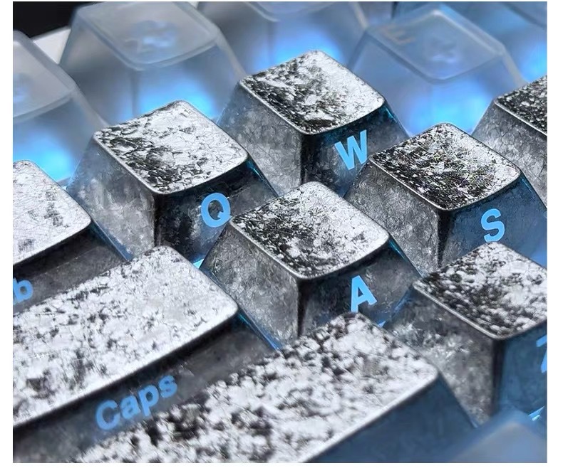 裂纹冰霜键帽PBT侧刻金属质感客制化透光冰花冰晶wooting60原厂帽