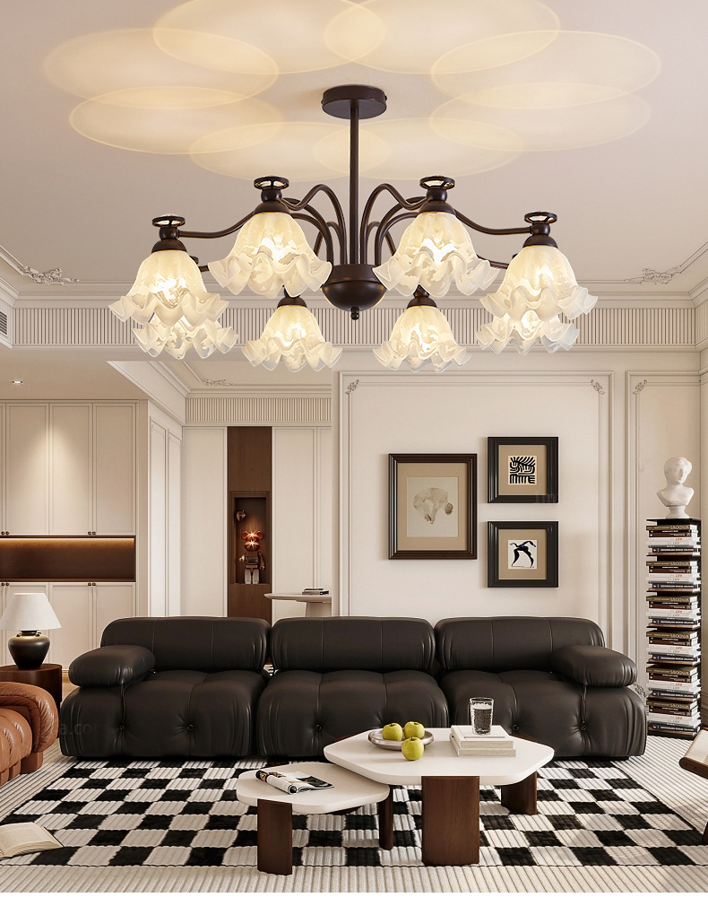 法式客厅吊灯复古中古风网红创意轻奢铃兰花朵家用温馨大厅主灯具