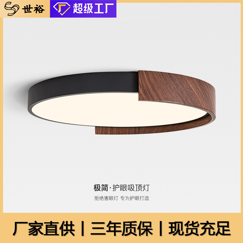 中世風寝室天井照明 超薄型シームレス目の保護ランプ わびさび風レトロウォールナット色マスターベッドルームルームランプ