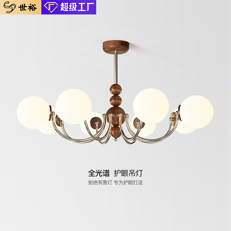 中古クリーム風客間天井灯新中国式現代全スペクトル保護眼胡桃色ホール灯セット食事灯