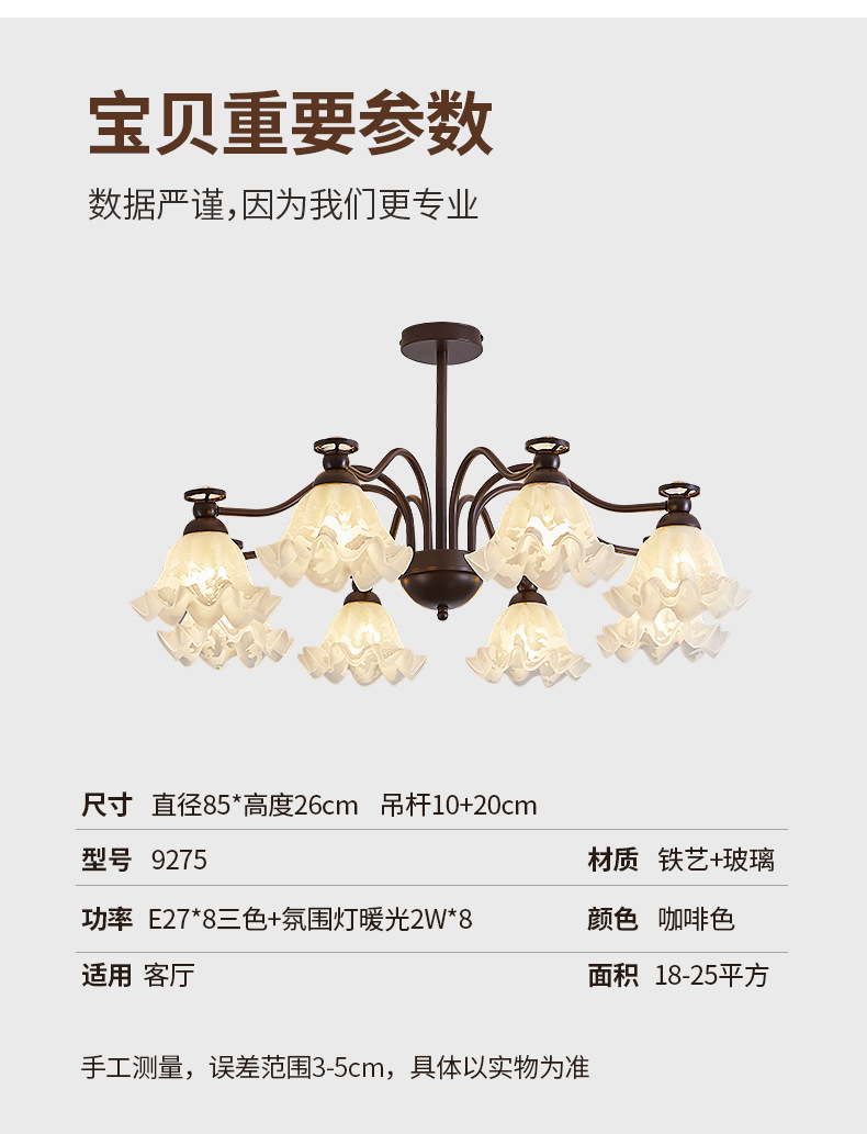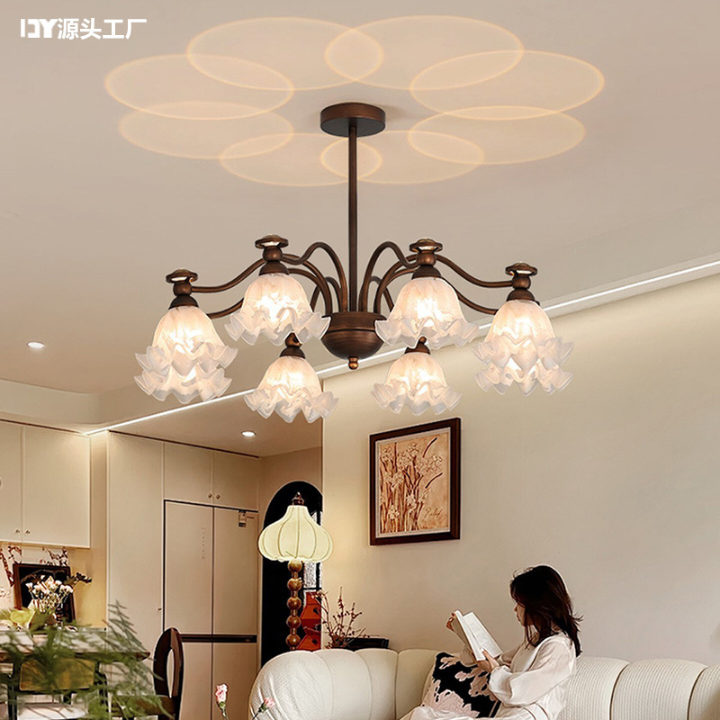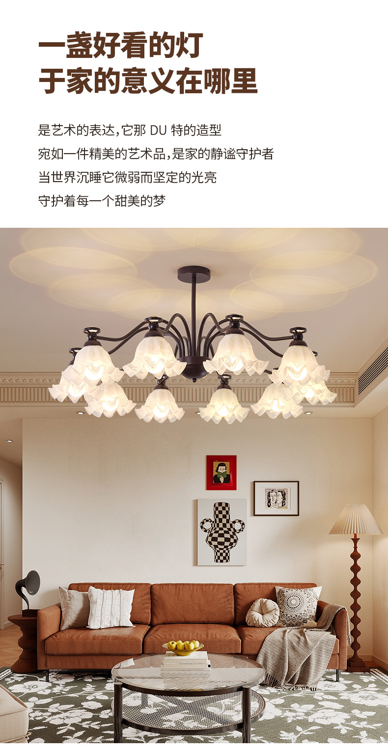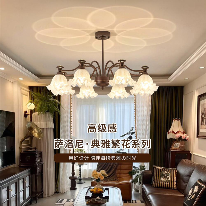 美式复古客厅吊灯铃兰花法式主卧室灯具全屋中古风大厅主灯餐厅灯