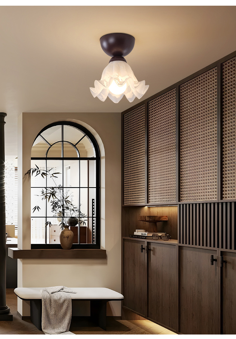 中世スタイルのフレンチリビングルームランプホールメインライトモダンシンプルフラワーレトロわびさびスタイルベッドルームランプレストランシャンデリア