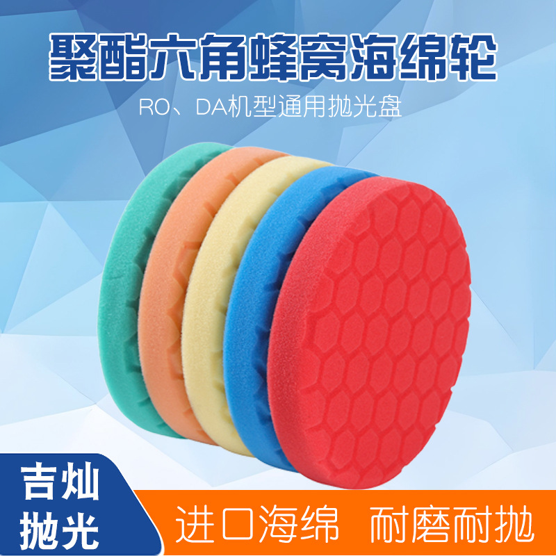 海绵抛光轮聚酯六角蜂窝蜂巢打蜡海绵轮镜面还原盘粗中细汽车抛光