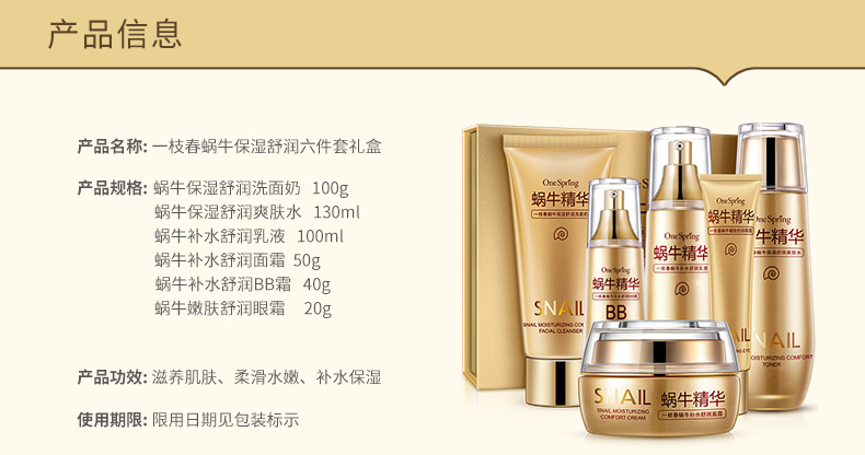 产品规格 一枝春 蜗牛舒润保湿六件套