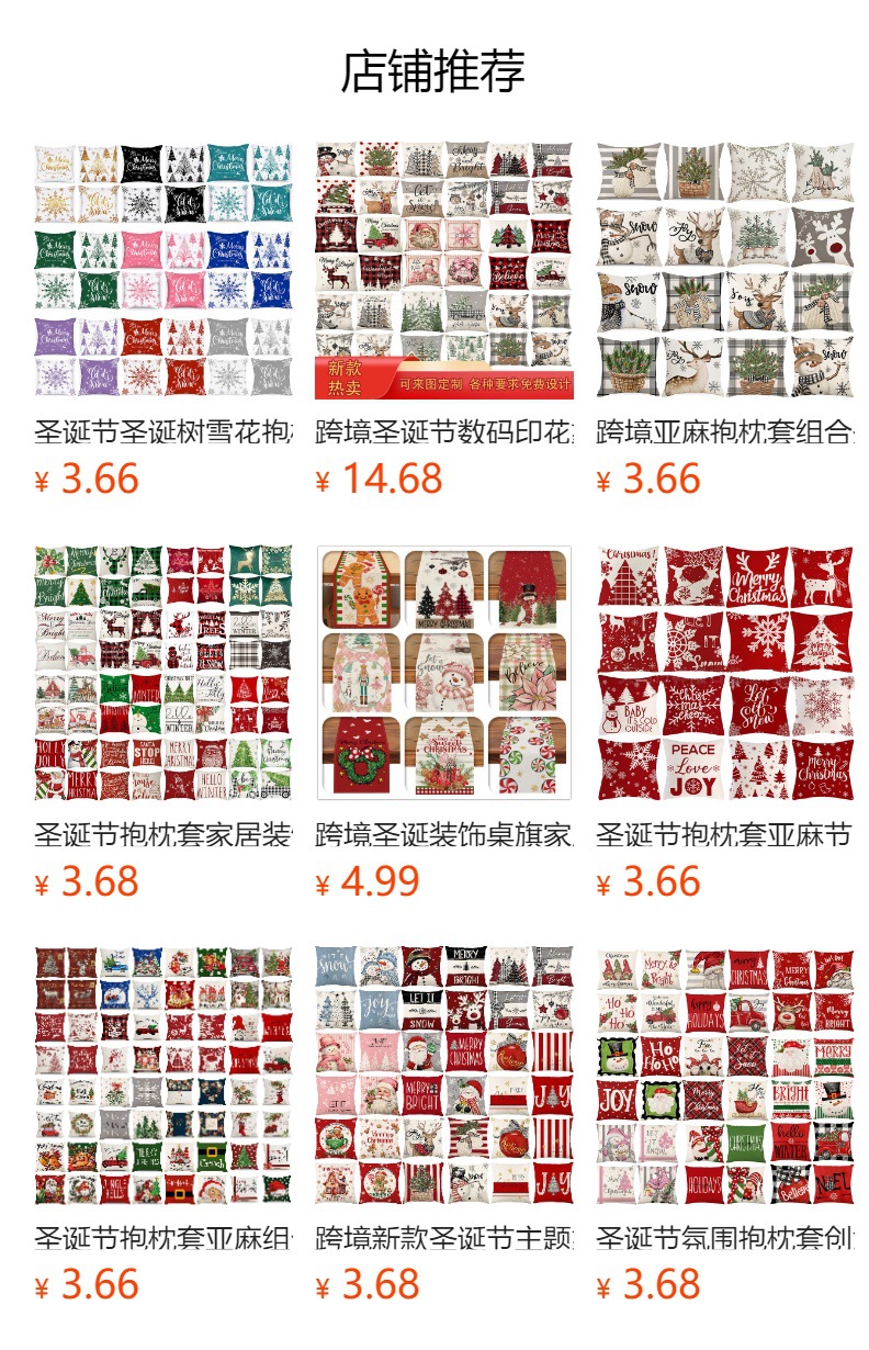 wish热销跨境圣诞抱枕节日氛围感沙发靠枕套卡通亚麻圣诞抱枕套