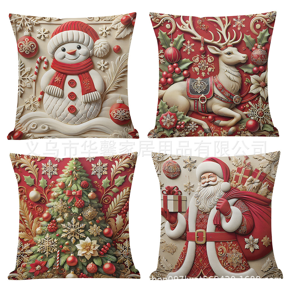 亚马逊圣诞节系列抱枕套圣诞老人雪人节日装饰沙发靠枕套亚麻枕套