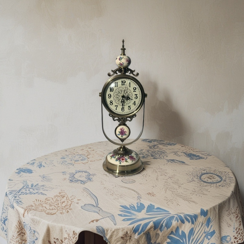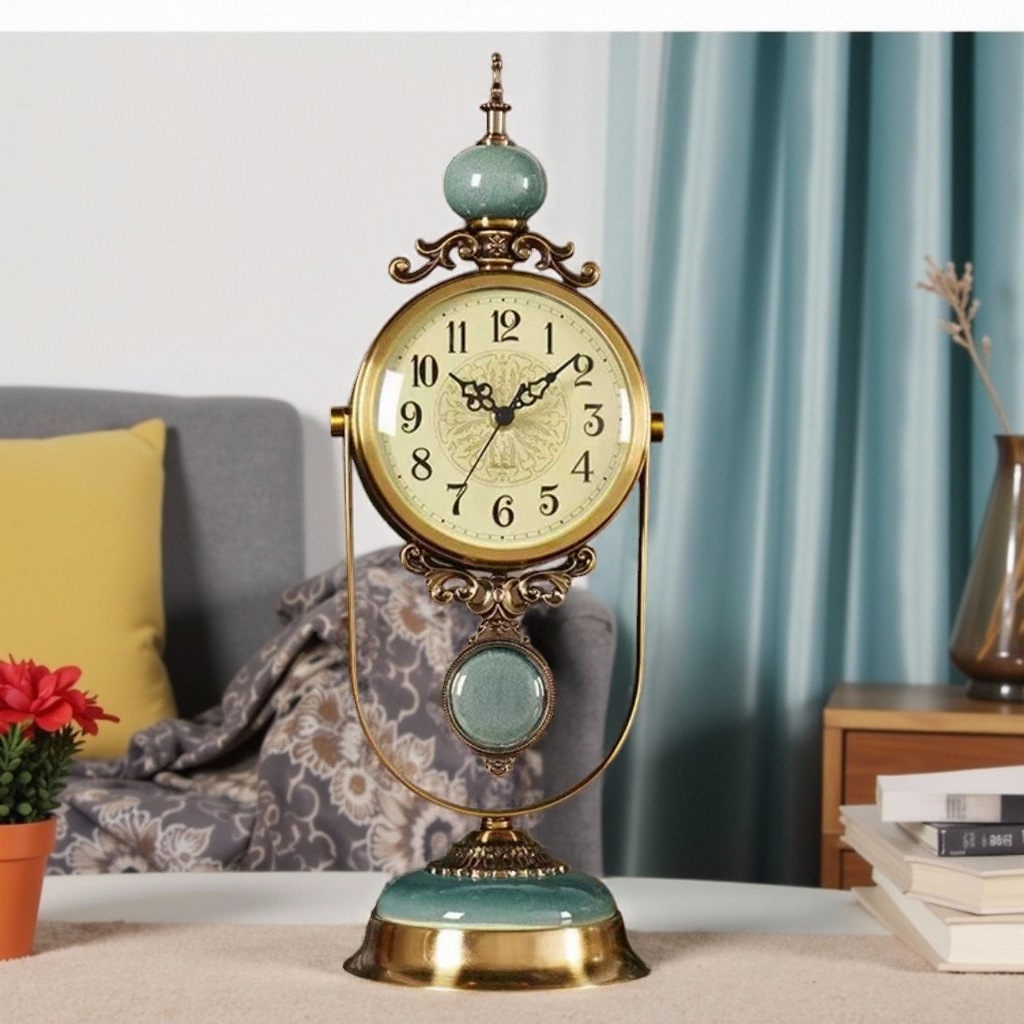 美式客厅复古家用座钟台钟摆件欧式创意家居床头柜钟表 Desk lamp