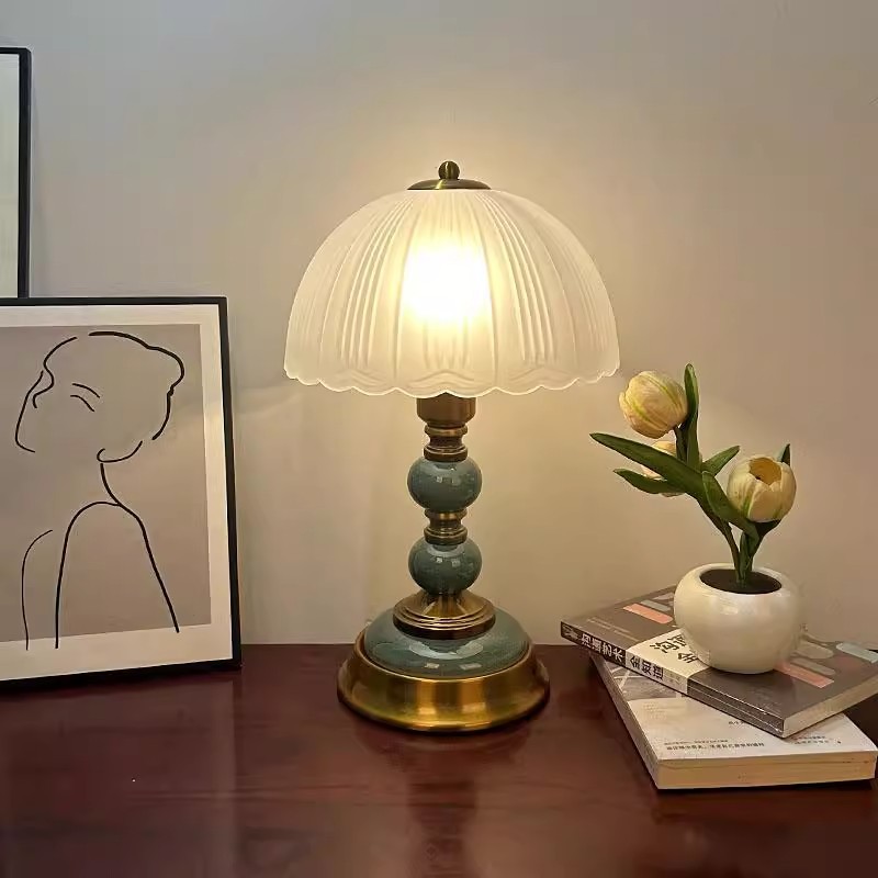 アメリカンモダンライト高級セラミックテーブルランプクリエイティブベッドサイド雰囲気ランプ寝室書斎暖かい目の保護LEDナイトライト