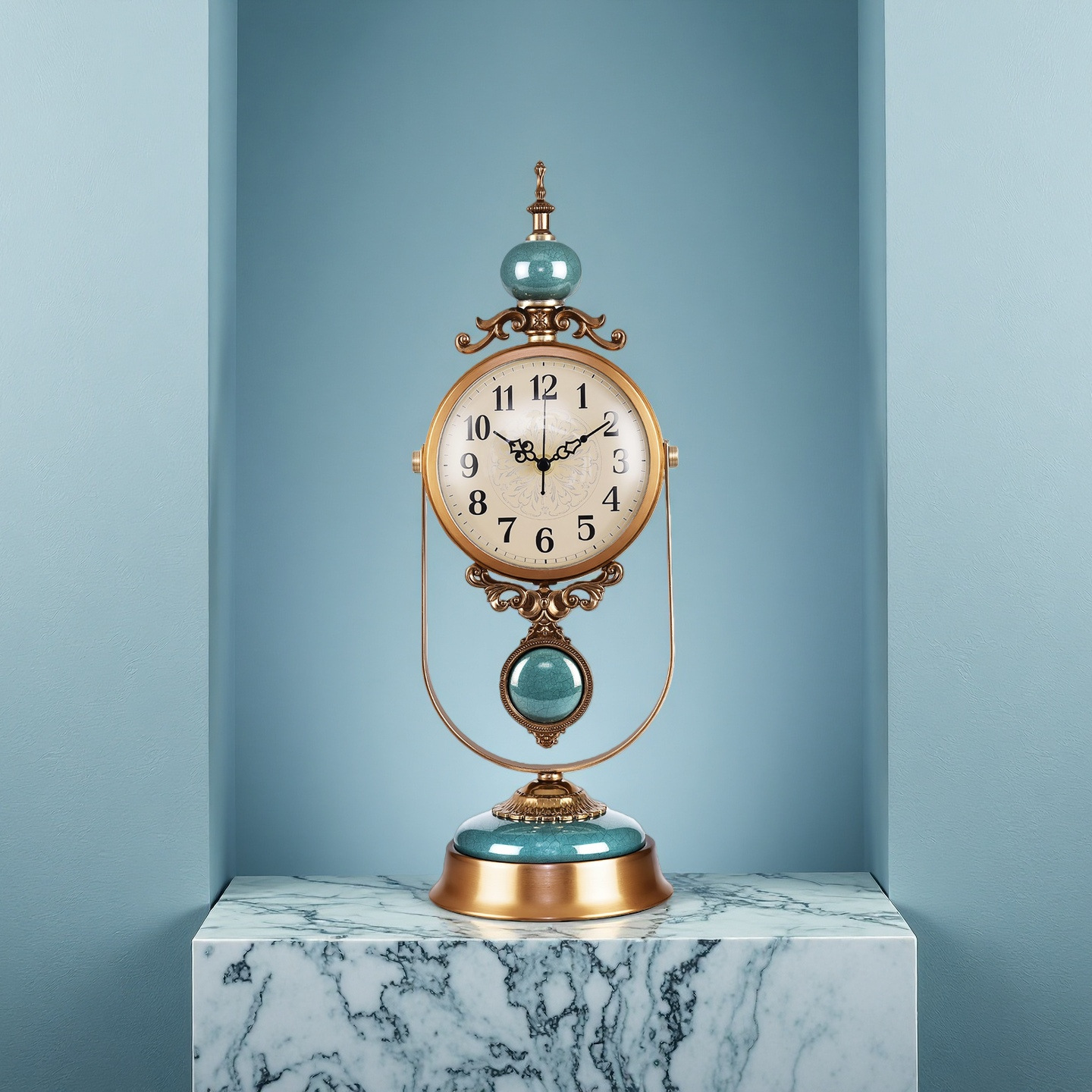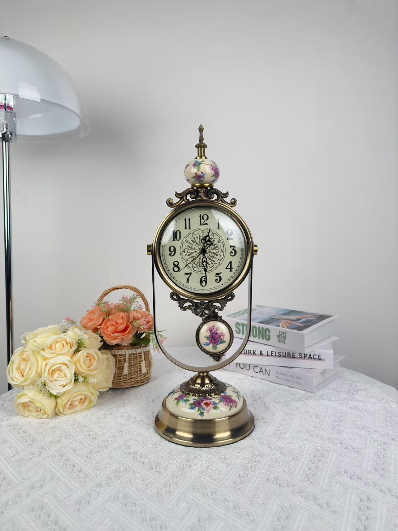 复古座钟创意礼物桌面摆件时钟旋转摆锤座钟创意摆件创意设计