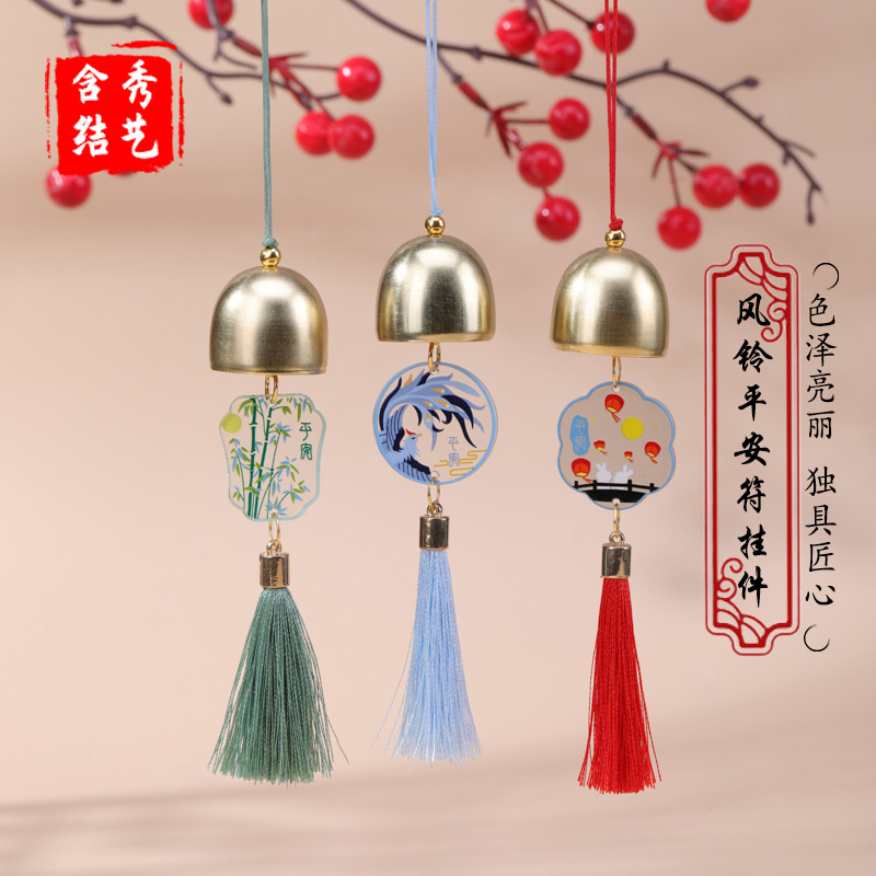 新品风铃平安符挂件金属卡通造型铃铛挂饰国风元素礼品挂件直批发