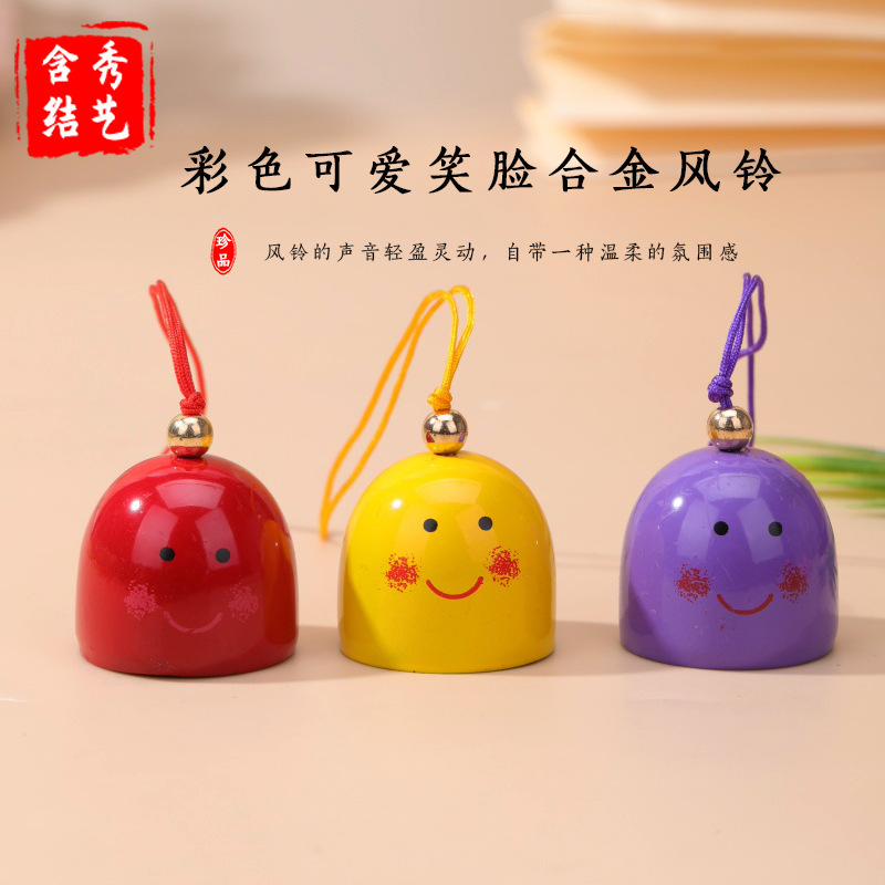 彩色可爱笑脸合金铃铛风铃挂件门饰中国结材料箱子包包车内挂饰款