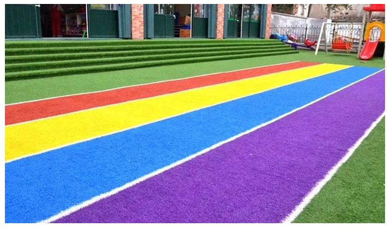 幼儿园彩虹跑道纯色红黄蓝紫仿真草坪户外游乐场操场人造彩色草皮