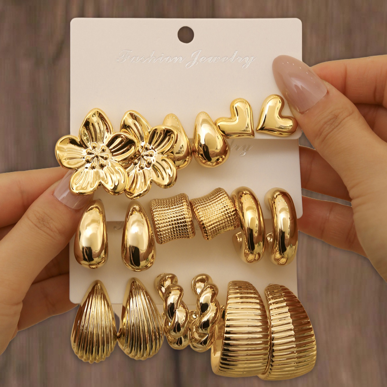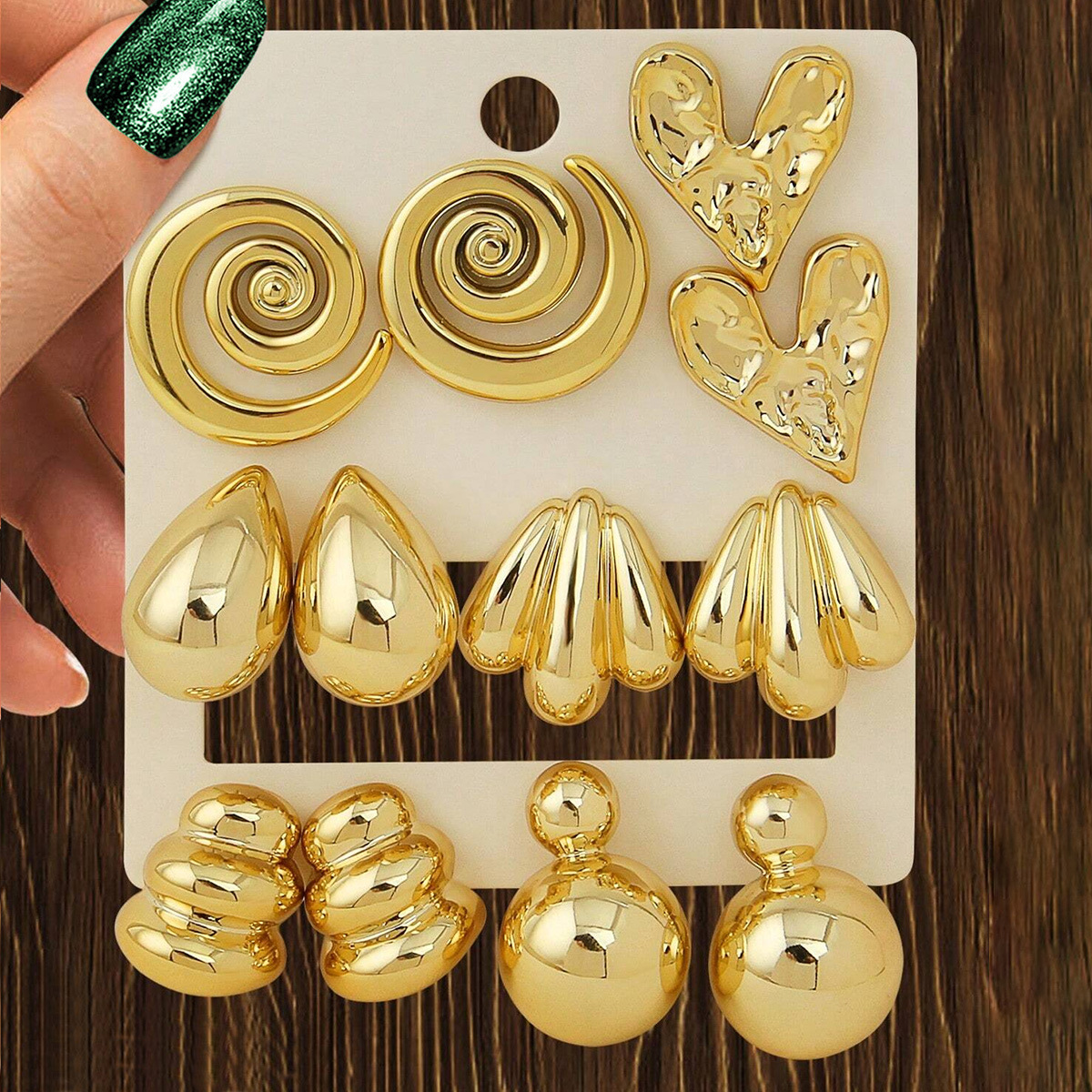 国境を越えて人気の高いジュエリーイヤリング 女性用 ヴィンテージエレガントスタイル イヤリングセット ハートと幾何学模様のイヤリング