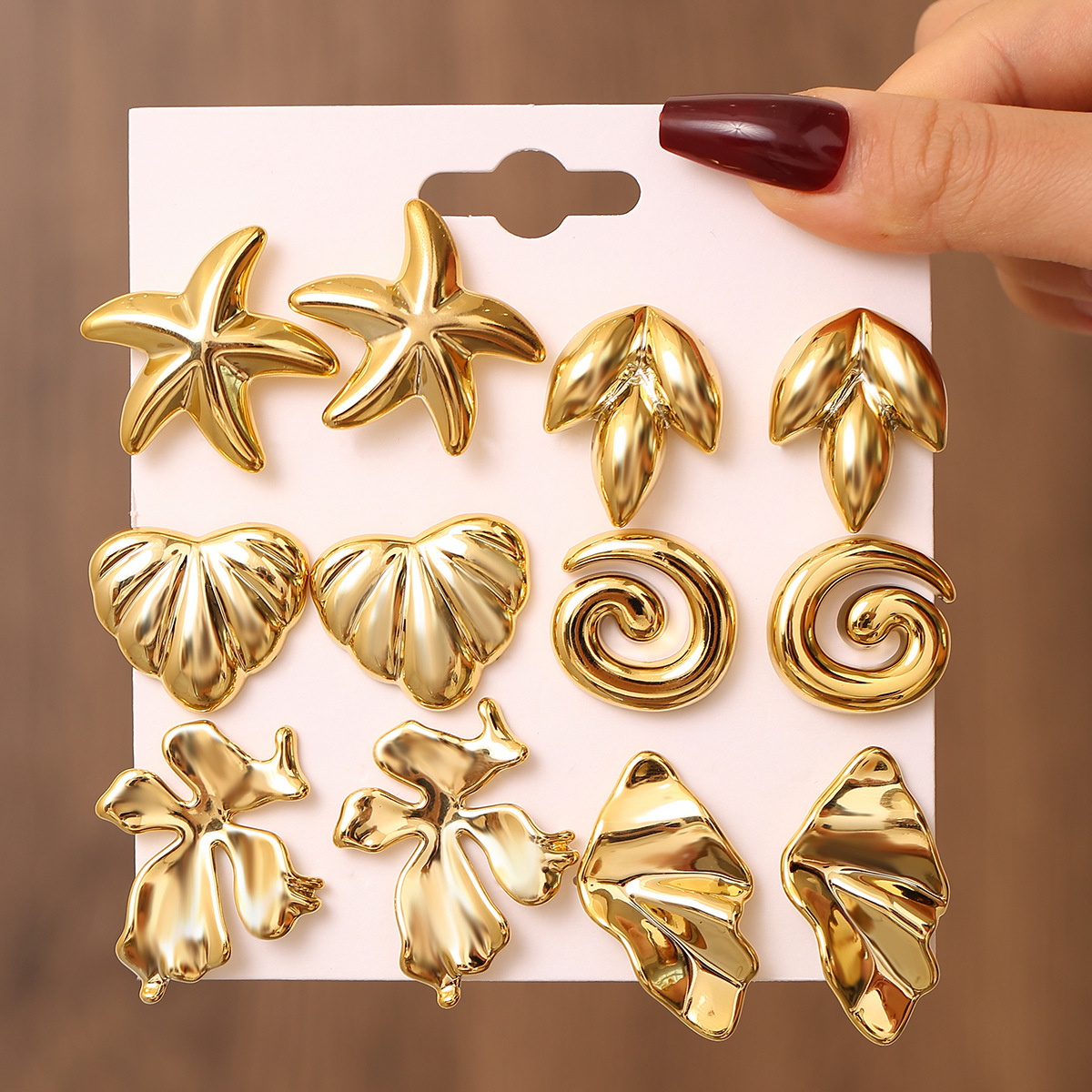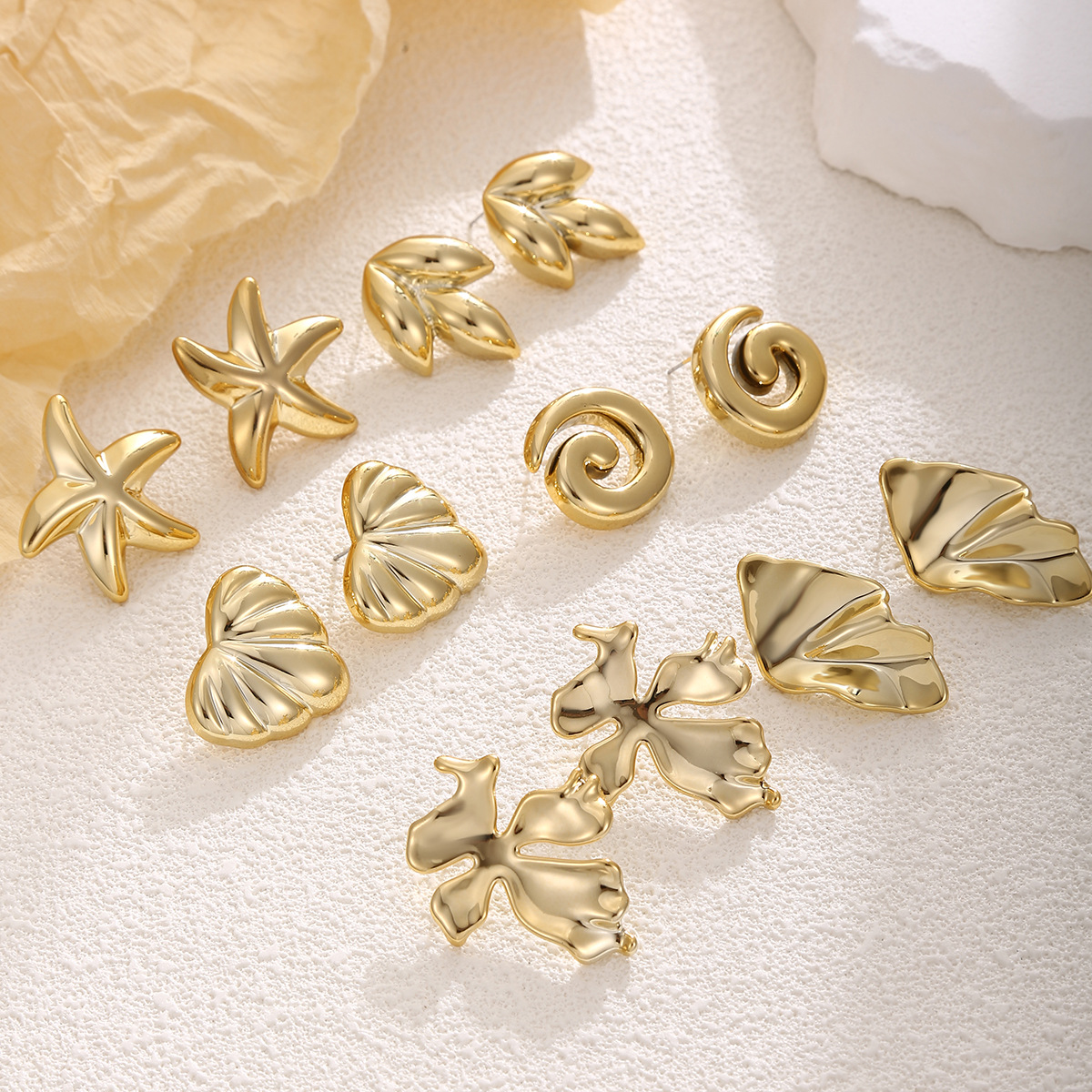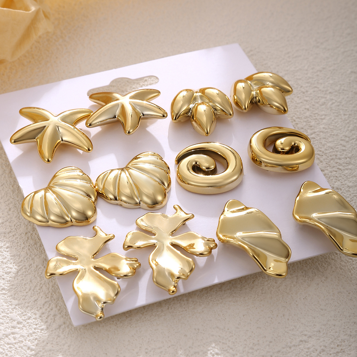 跨境欧美风金色几何耳环套装时尚百搭女士耳饰高级感耳圈耳钉组合