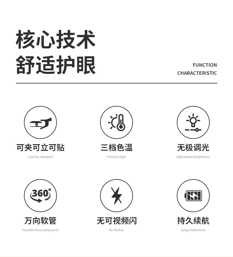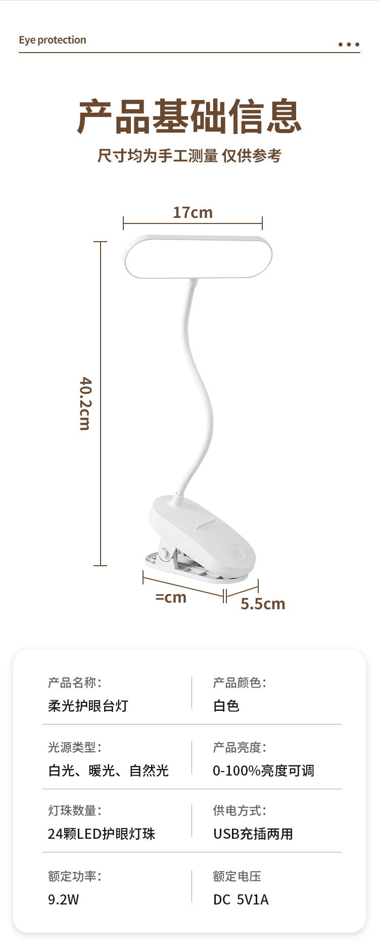 外贸爆款式台灯超亮圆形护眼学习灯充电插电学生宿舍灯夹子床头灯