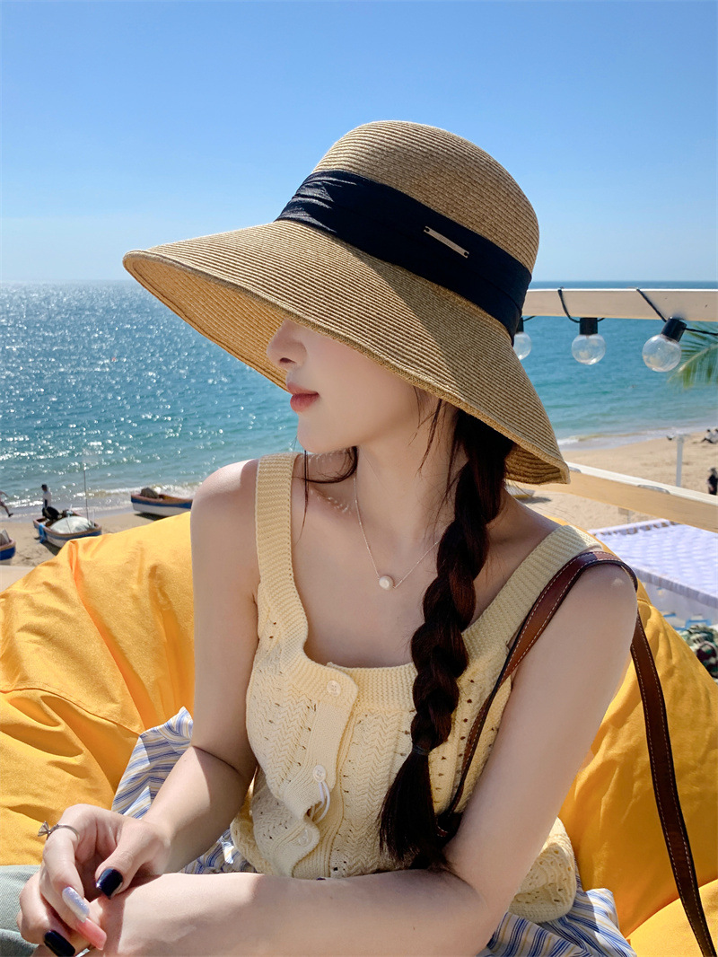大きいつばの日よけの帽子の子供の韓国版の潮のヘボンの風の夏の日よけの太陽の海辺の砂浜の麦わら帽子は丸い顔に適します。