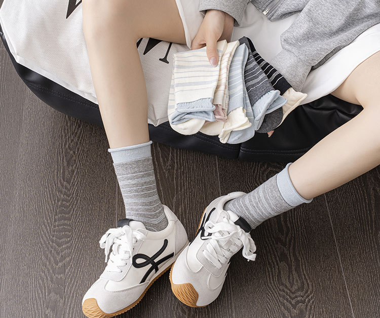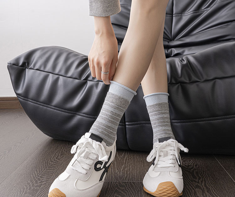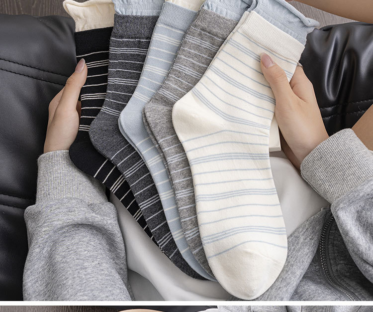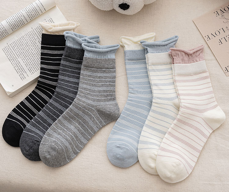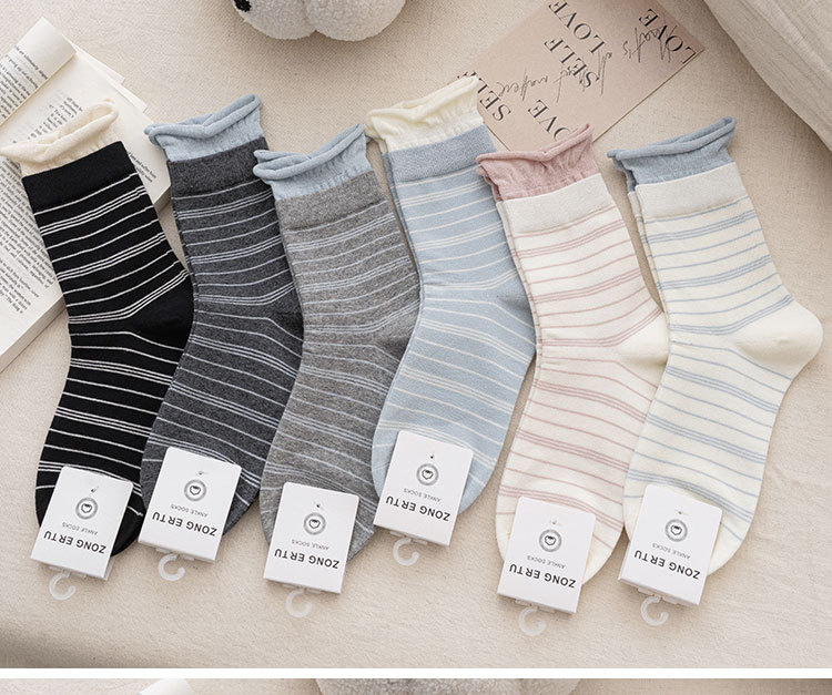 纯棉袜子女韩系堆堆袜泡泡口条纹布标秋冬中筒袜ins诸暨袜子批发