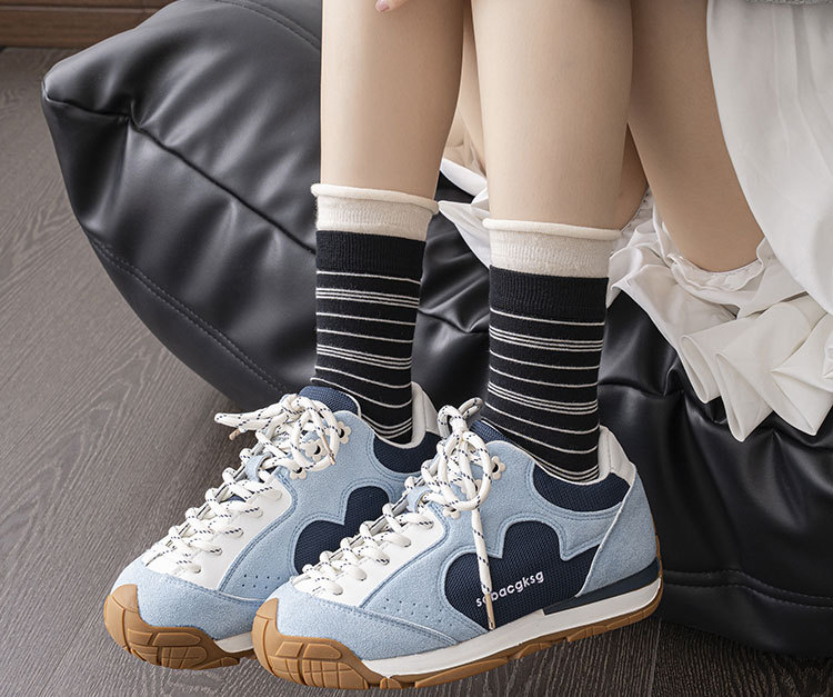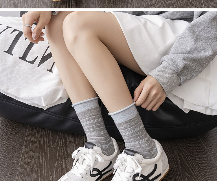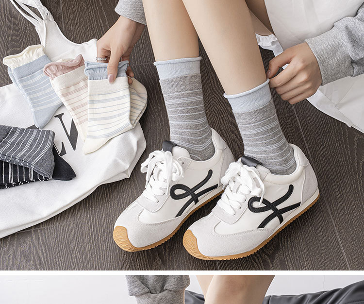 袜子女中筒袜春季新款ins花边条纹潮袜中筒袜休闲女袜百搭堆堆袜