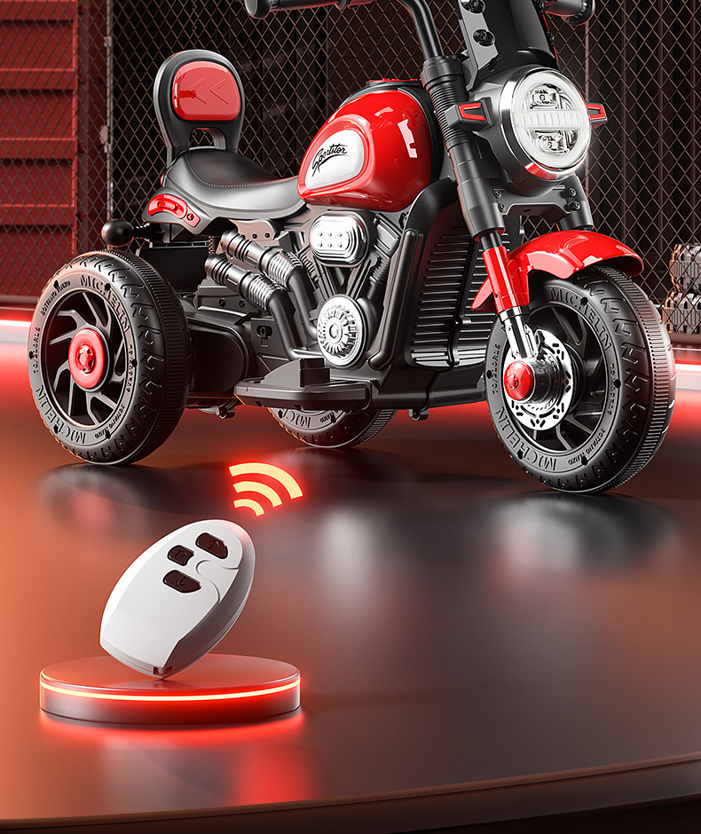 子供用オートバイの電気自動車三輪車は早くリモコンを教えています。