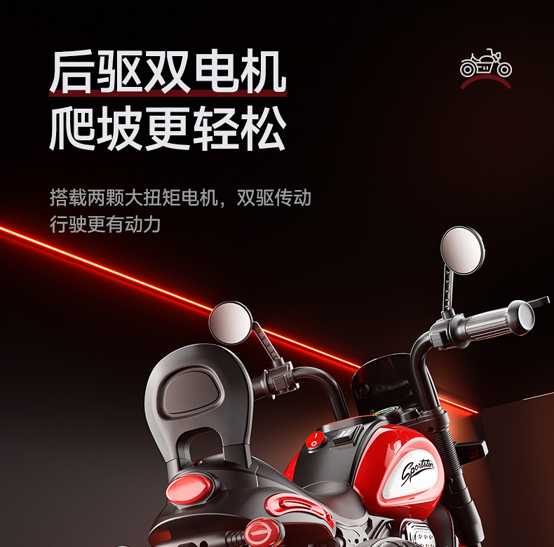 颜色 红色单驱+标配电瓶+音乐灯光,黄色单驱+标配电瓶+音乐灯光,蓝色单驱+标配电瓶+音乐灯光,棕色单驱+标配电瓶+音乐灯光,红色双驱+超大电瓶+音乐灯光,黄色双驱+超大电瓶+音乐灯光,蓝色双驱+超大电瓶+音乐灯光,棕色双驱+超大电瓶+音乐灯光,红色双驱+超大电瓶+遥控+蓝牙音乐灯光,黄色双驱+超大电瓶+遥控+蓝牙音乐灯光,蓝色双驱+超大电瓶+遥控+蓝牙音乐灯光,棕色双驱+超大电瓶+遥控+蓝牙音乐灯光
