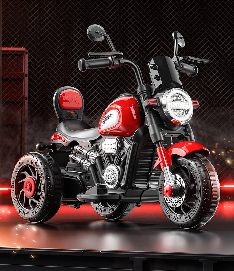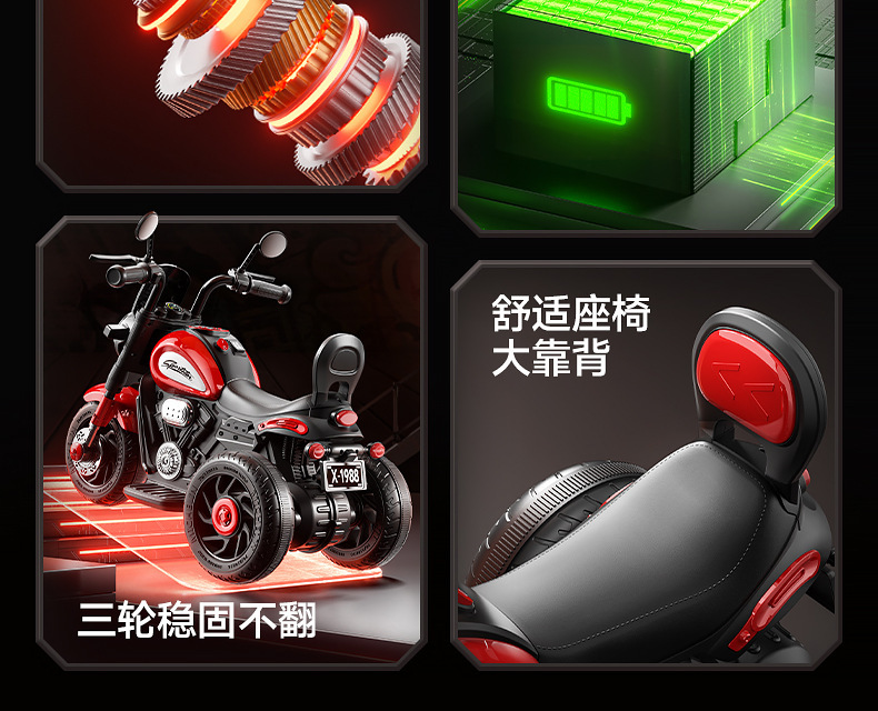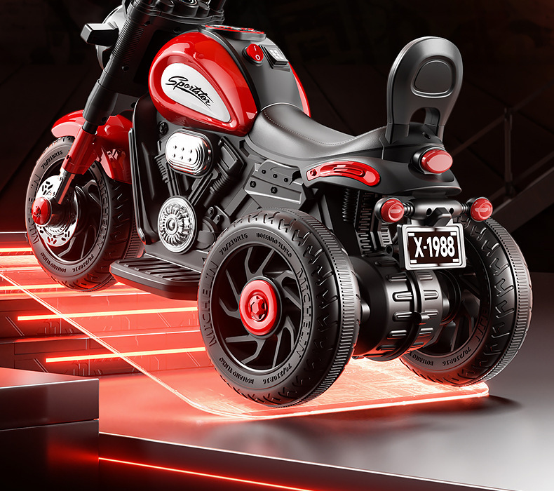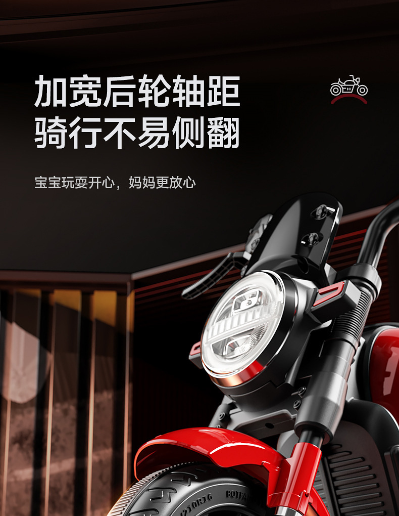 厂家儿童电动摩托车男女孩可充电三轮车双驱电瓶车宝宝可坐玩具车
