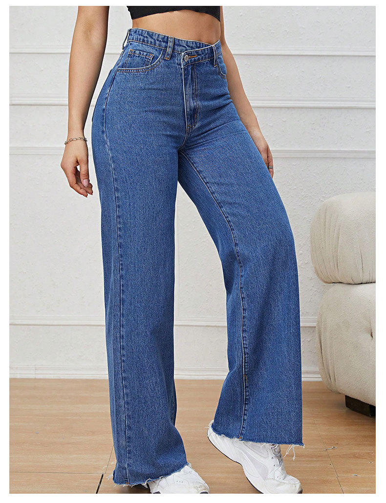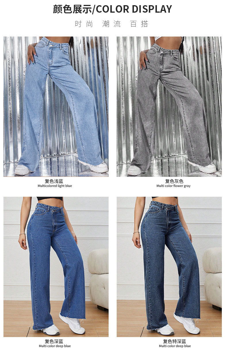 2023新型クロスボーダー女性カジュアルジーンズゆるいハイウエスト広脚長ズボン街頭カウボーイ直筒長ズボン