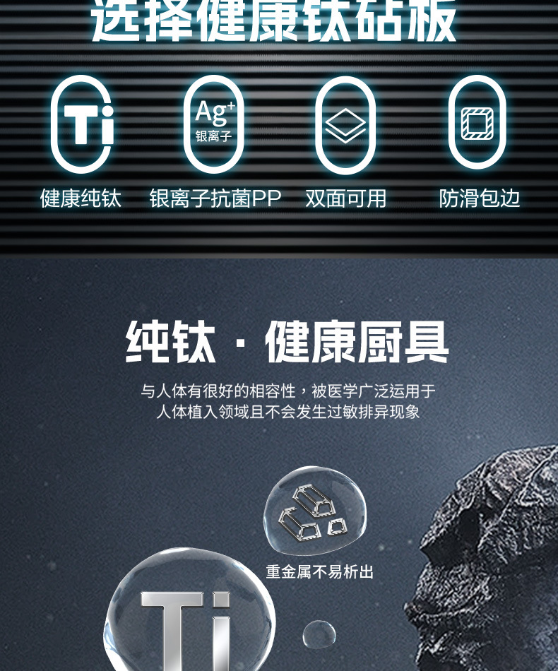 纯钛家用菜板钛菜板医疗级菜板防发霉双面切菜板钛砧板