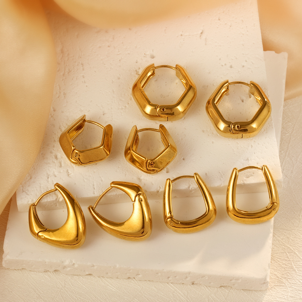 国境を越えた女性用ステンレス鋼イヤリング、軽量高級手磨き幾何学イヤリング、炉の中のリアルゴールドイヤリング卸売