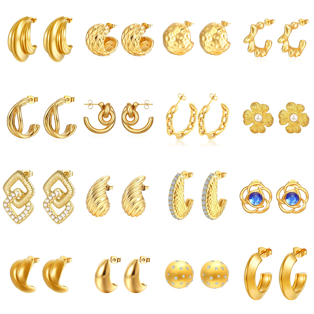跨境直供几何不锈钢耳环 女潮流高级感复古耳饰百搭镀18K耳环批发
