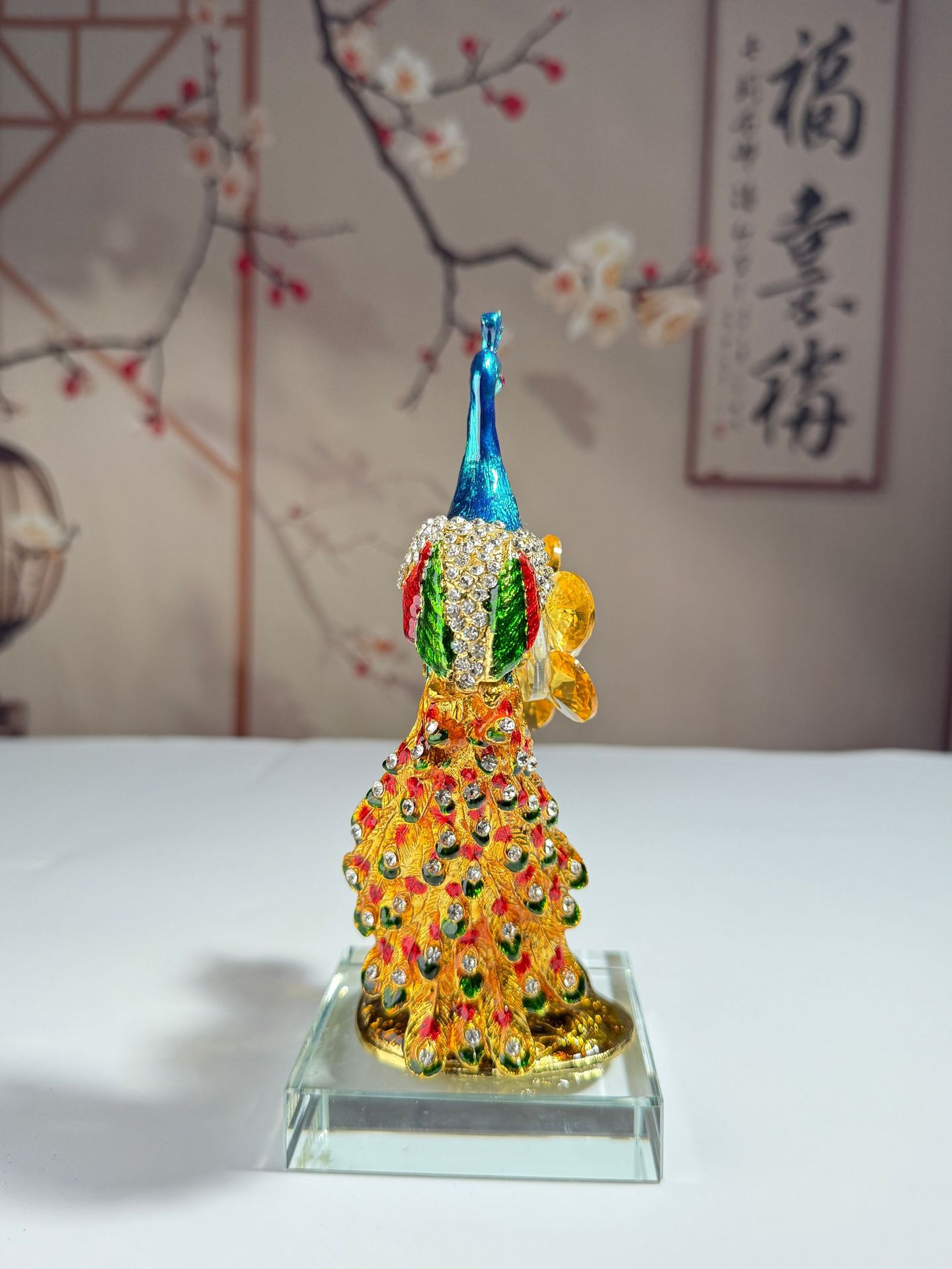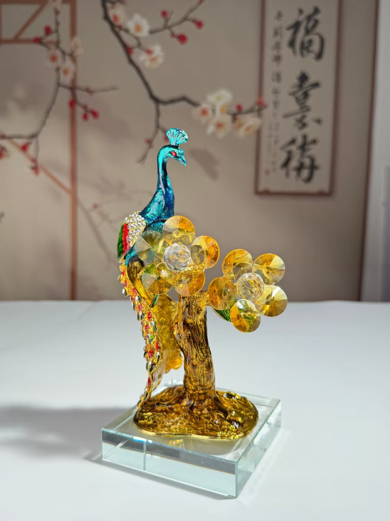 珐琅彩孔雀摆件简约轻奢风工艺品客厅桌面摆件生日礼物跨境货源
