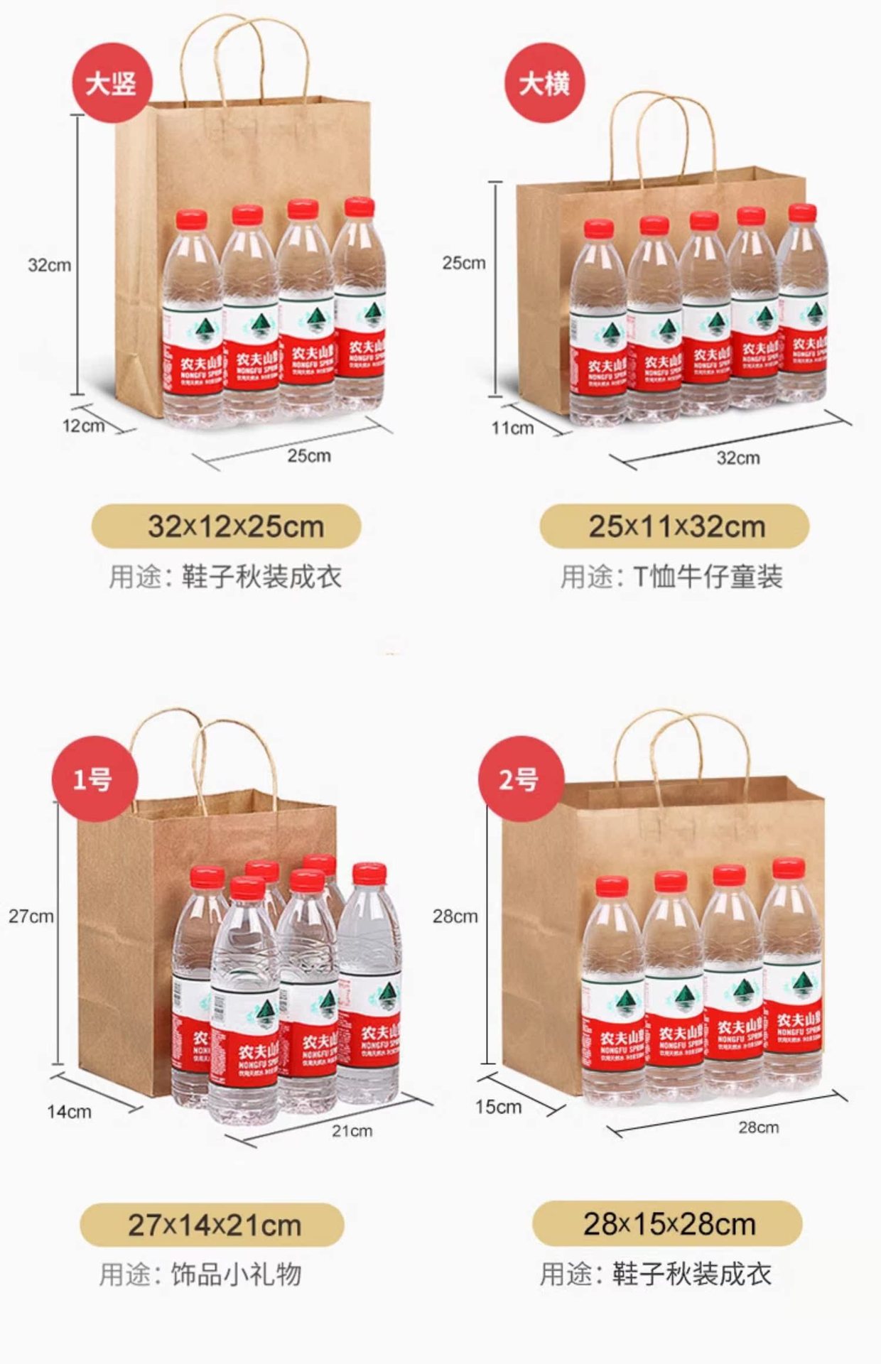 中竖21*11*27,小竖15*8*21,大横32*11*27,大竖26*12*31,单杯袋12*10*22,大外卖28*15*28,中外卖21*14*27,四杯袋24*17*27,超大竖30.5*18*43,加大横40.5*13*31,海底捞同款13*7*14.5