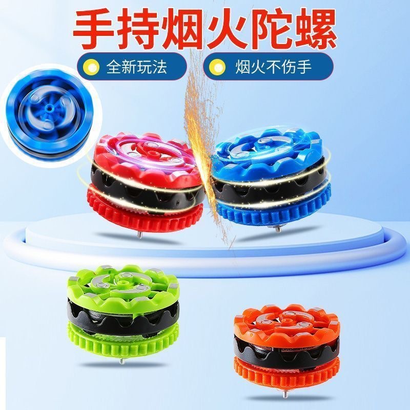 创意手持烟花陀螺会冒火的发光旋转陀螺对战爆旋解压玩具儿童男孩
