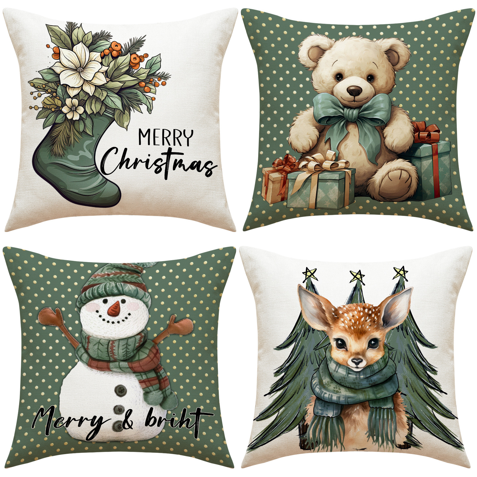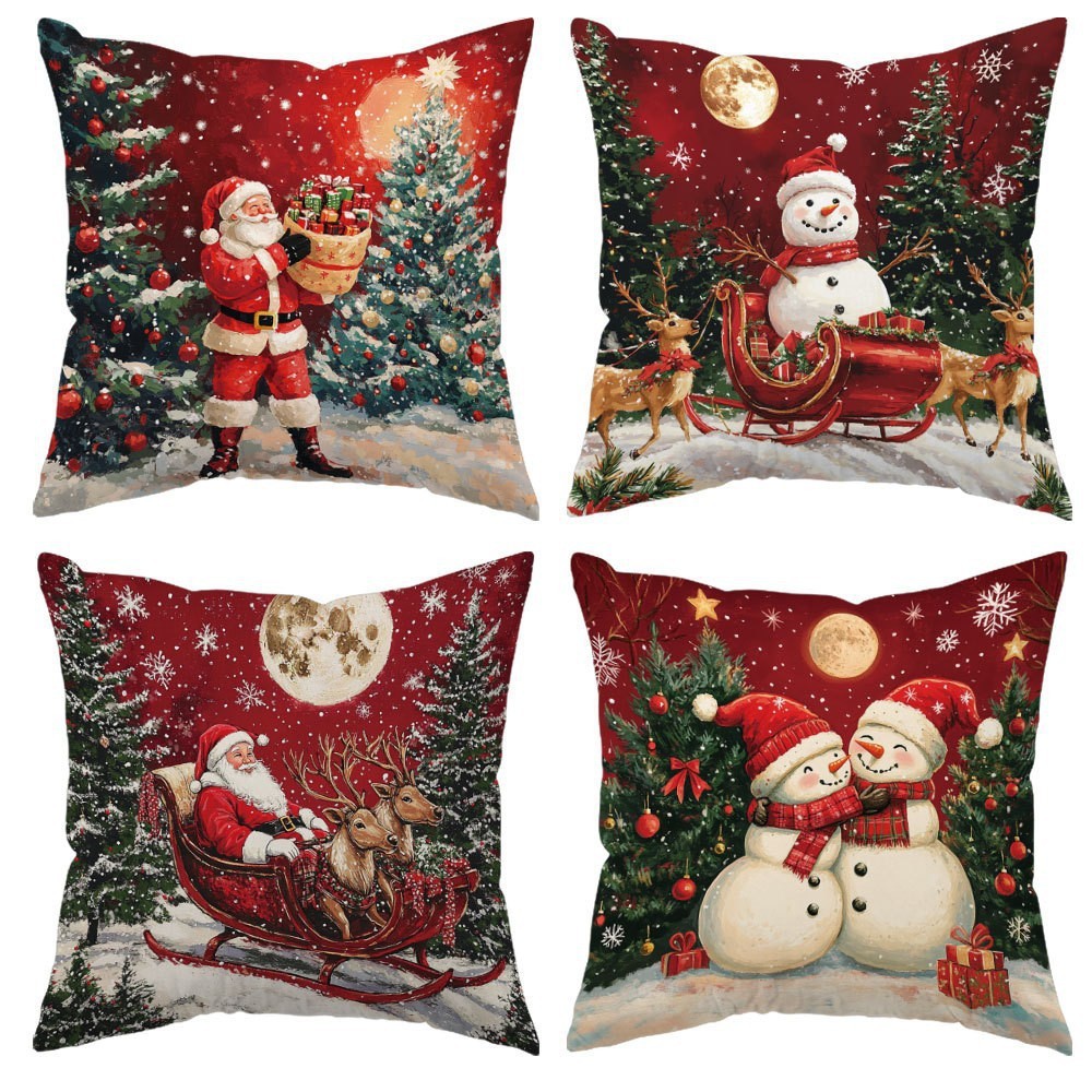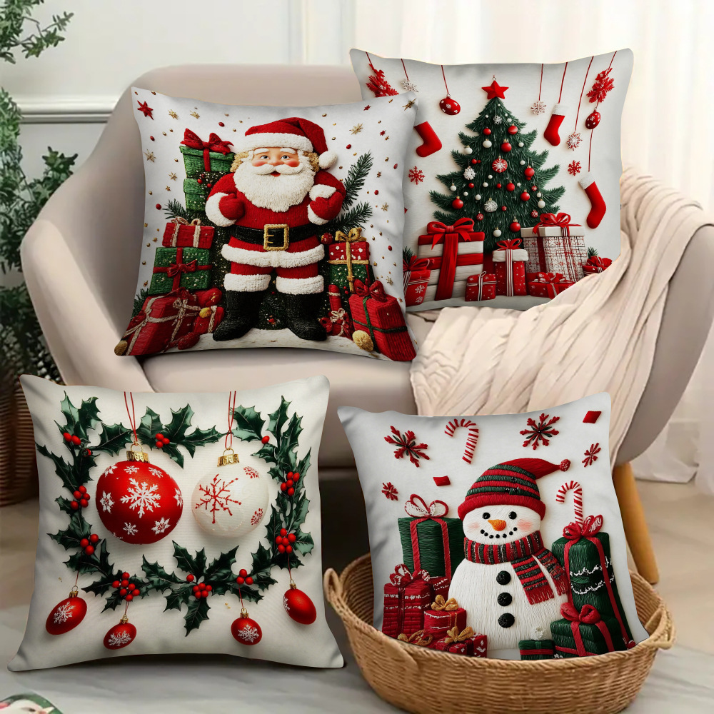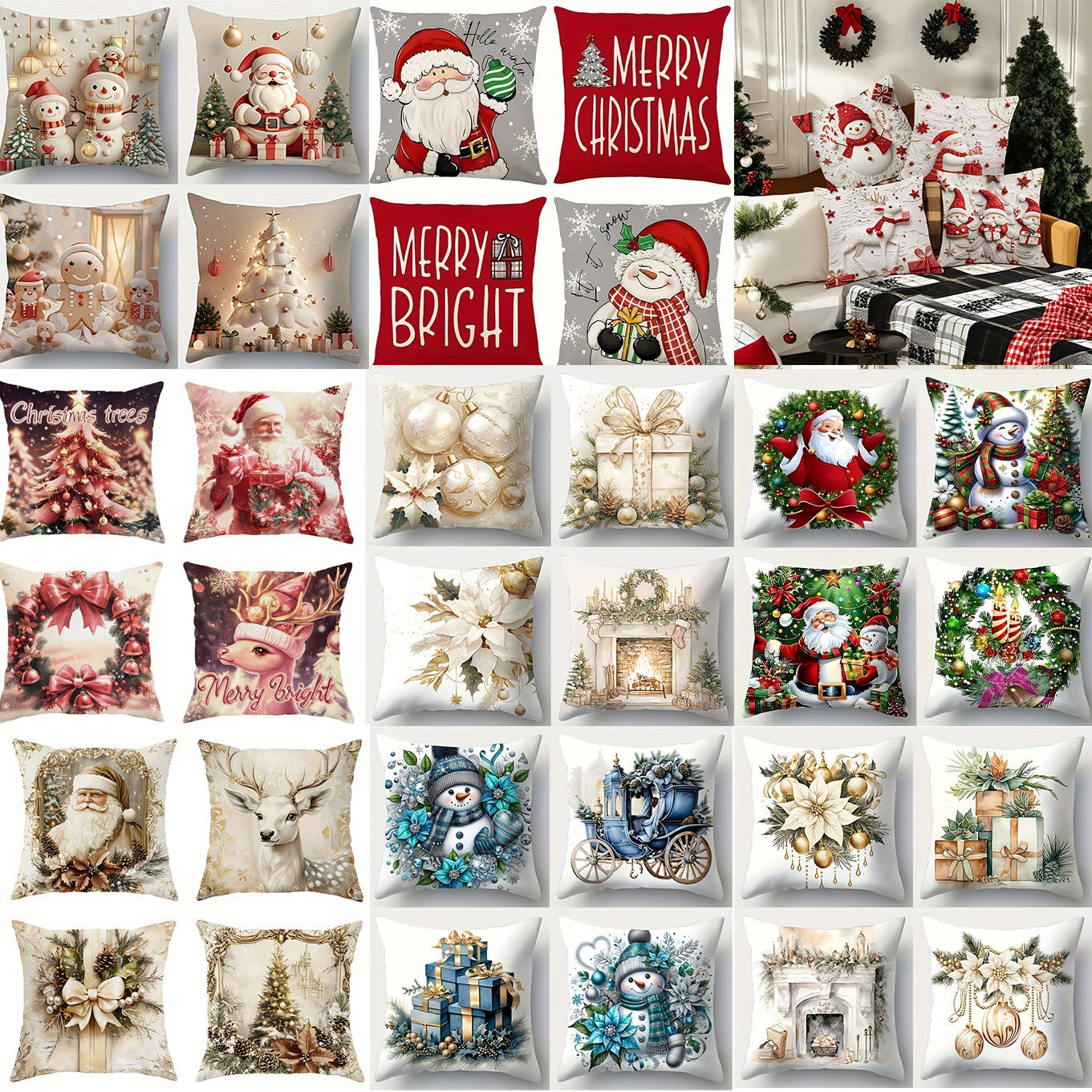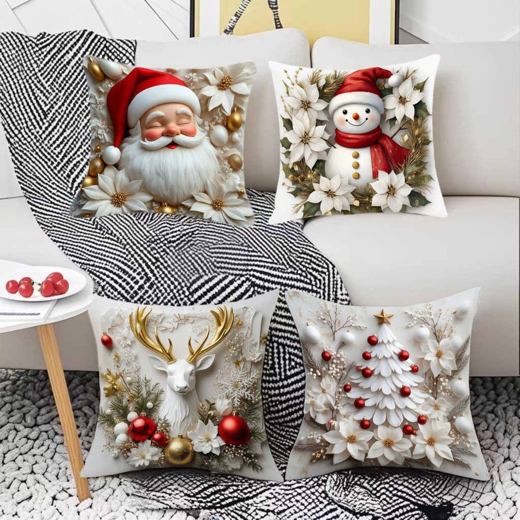 サンタクロース雪だるまギフトヘラジカ枕カバー片面プリントクリスマス冬リビングルームソファ寝室用