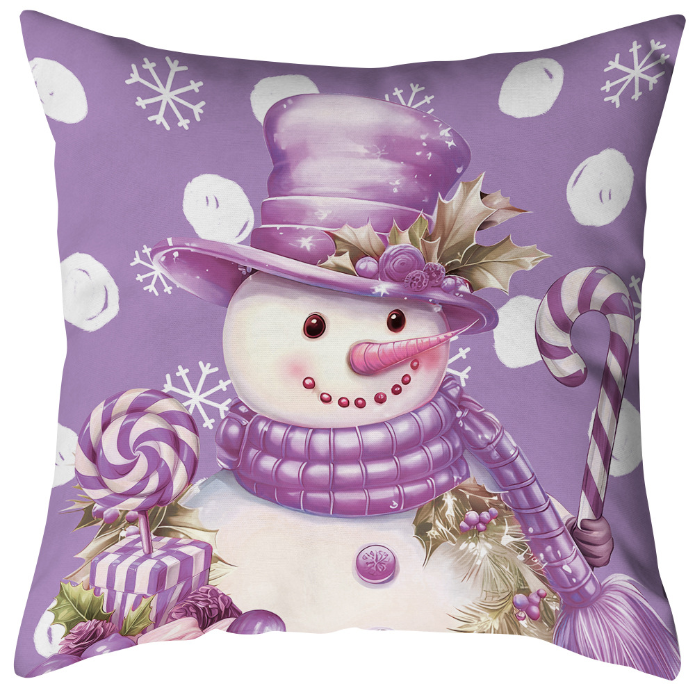 跨境亚马逊新款紫色雪人抱枕套圣诞节日装饰沙发客厅靠枕靠垫批发