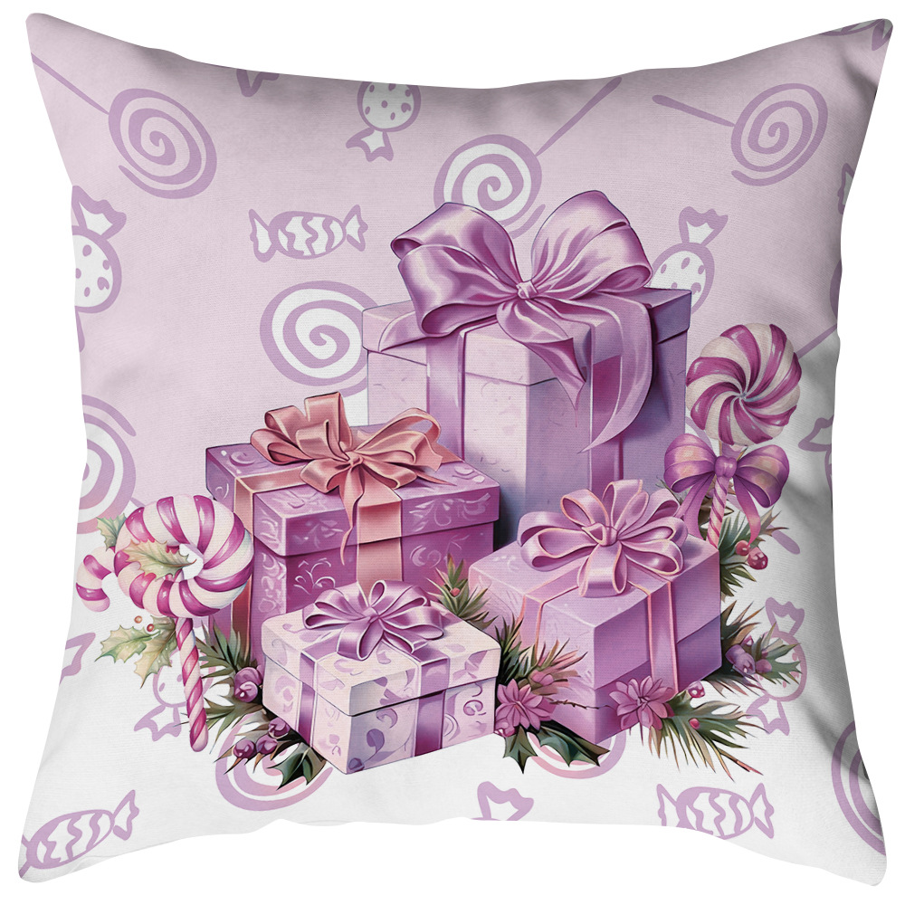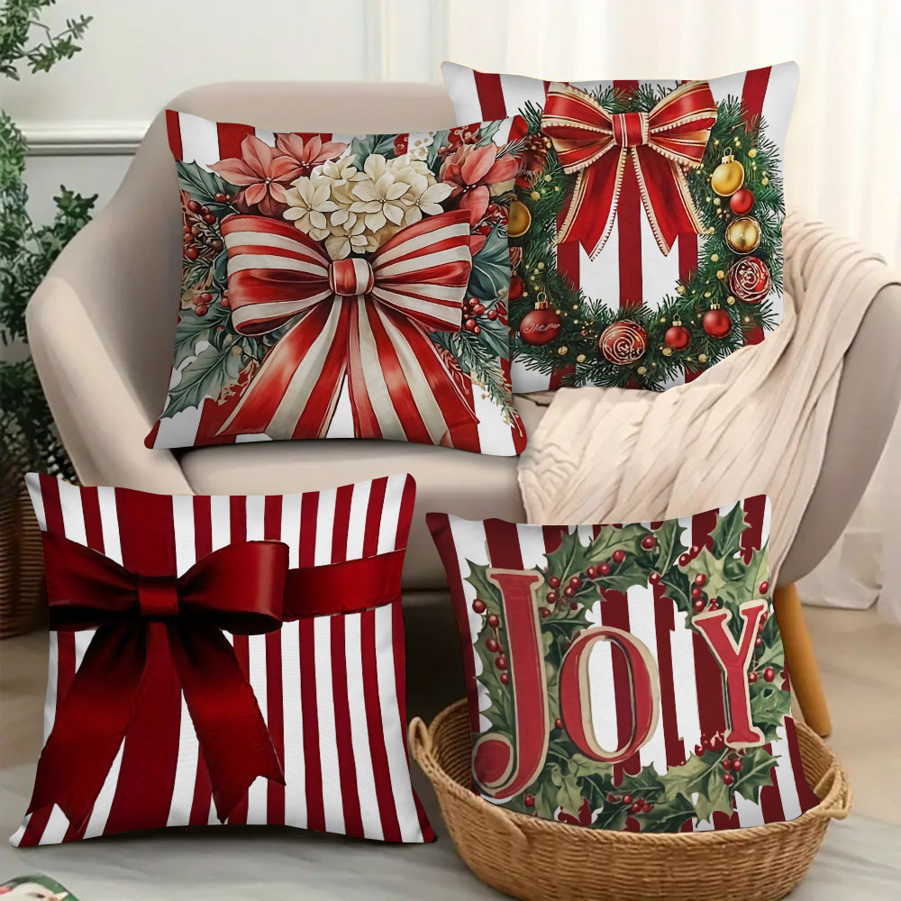 跨境热销圣诞节红色条纹蝴蝶结抱枕套节日装饰家居沙发靠垫抱枕套