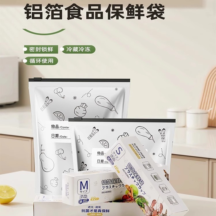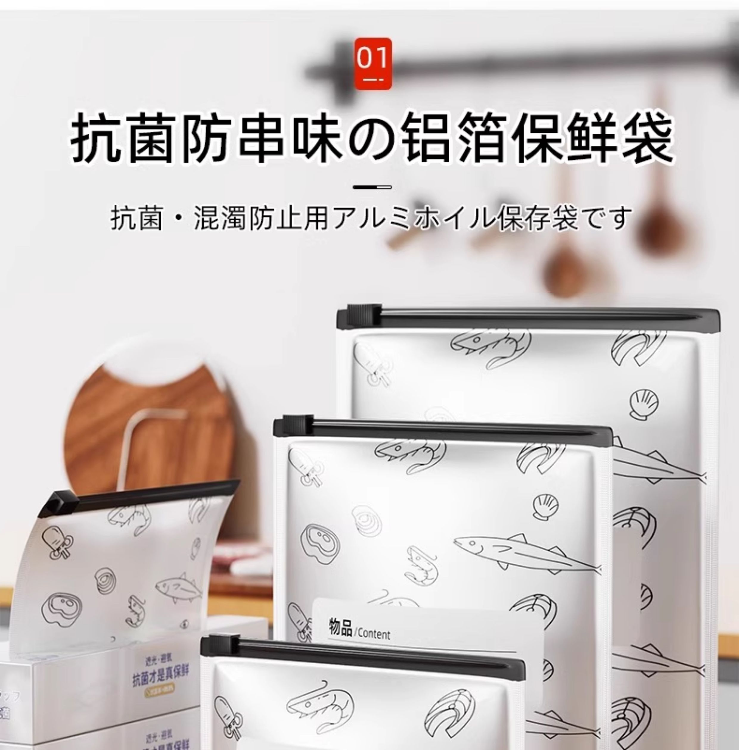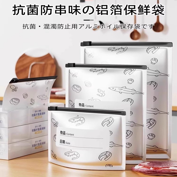 アルミホイルスライドロック鮮度保持袋 ジッパー密封袋 アルミホイル食品密袋 冷蔵庫冷凍冷蔵包装袋