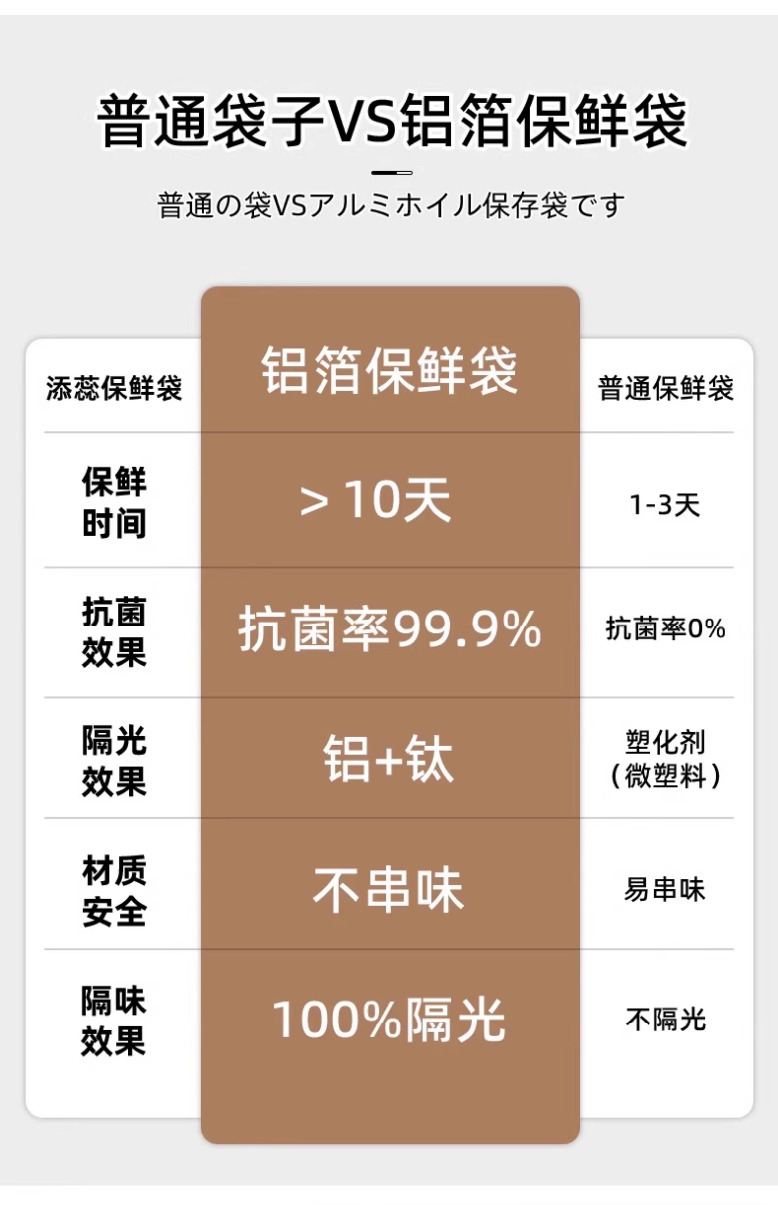 铝箔保鲜密封袋食品级冰箱家用冻肉蔬菜食物分装收纳袋拉链式